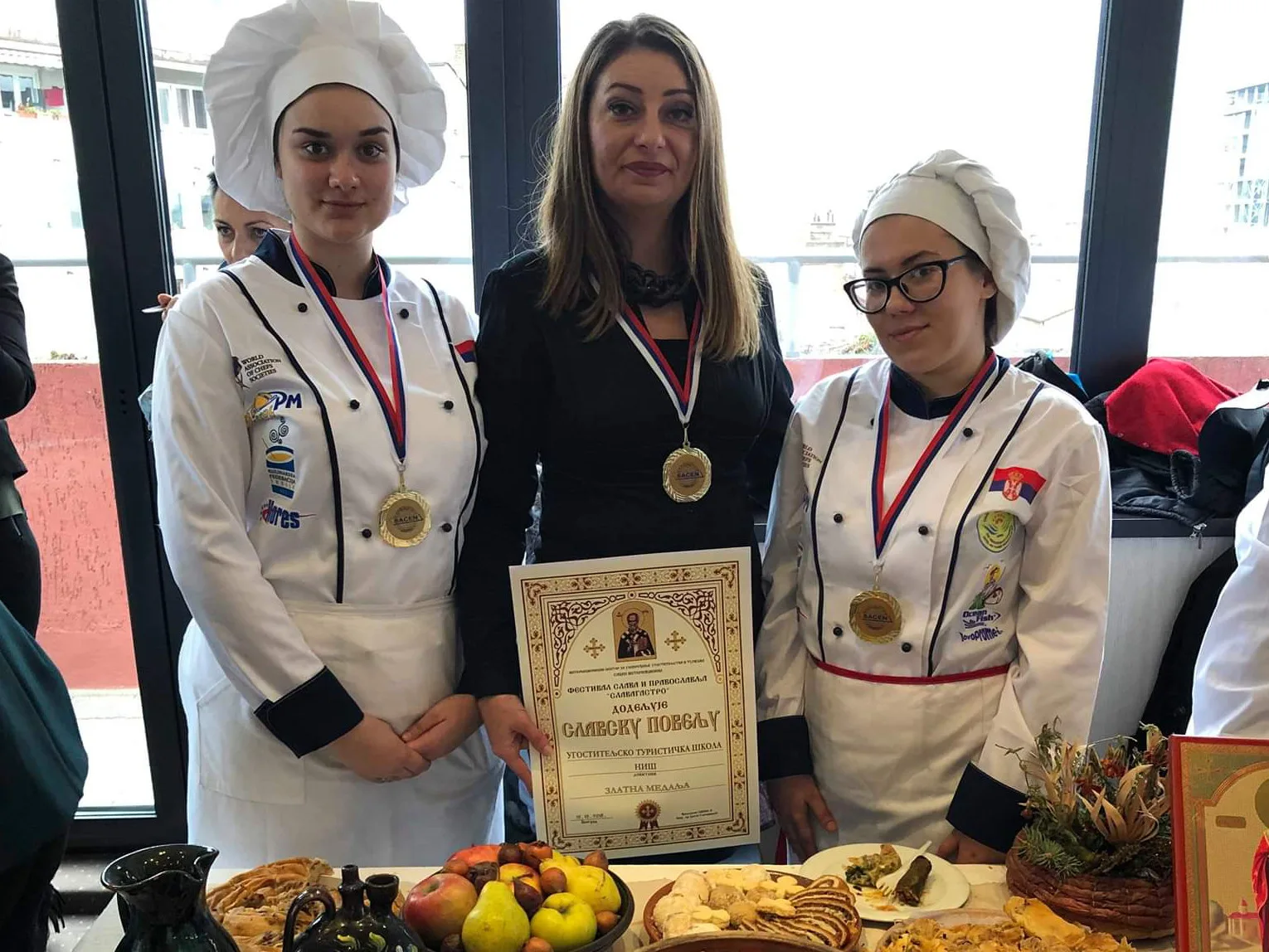 Bogatom slavskom trpezom na kojoj su se našli šaran na pirinču, trljanica, rolat od tunjevine i krompira, paprike punjene pasuljem, posne sarme u vinovom listu i listu kupusa, bobove pihtije, kao i posni kolači, učenici Ugostiteljsko-turističke škole iz Niša osvojili su dve zlatne medalje na festivalu “Slavagastro” održanom u Beogradu.