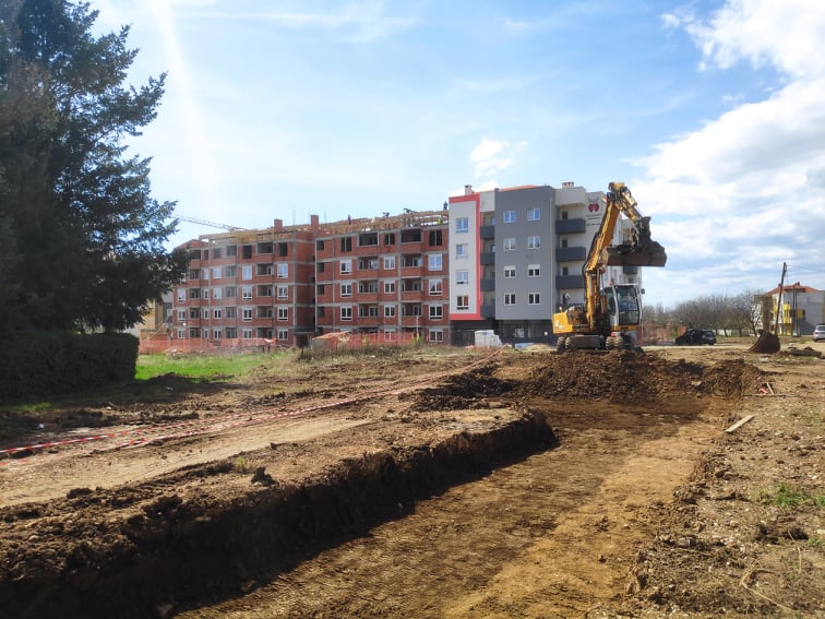 Za razliku od tada, kada su radovi stopirani zbog arheoloških istraživanja, na novom gradilištu radovi i dalje traju. Mašine su uključene, a deo gde se nalazi vodovod ograđen crveno-belom trakom.