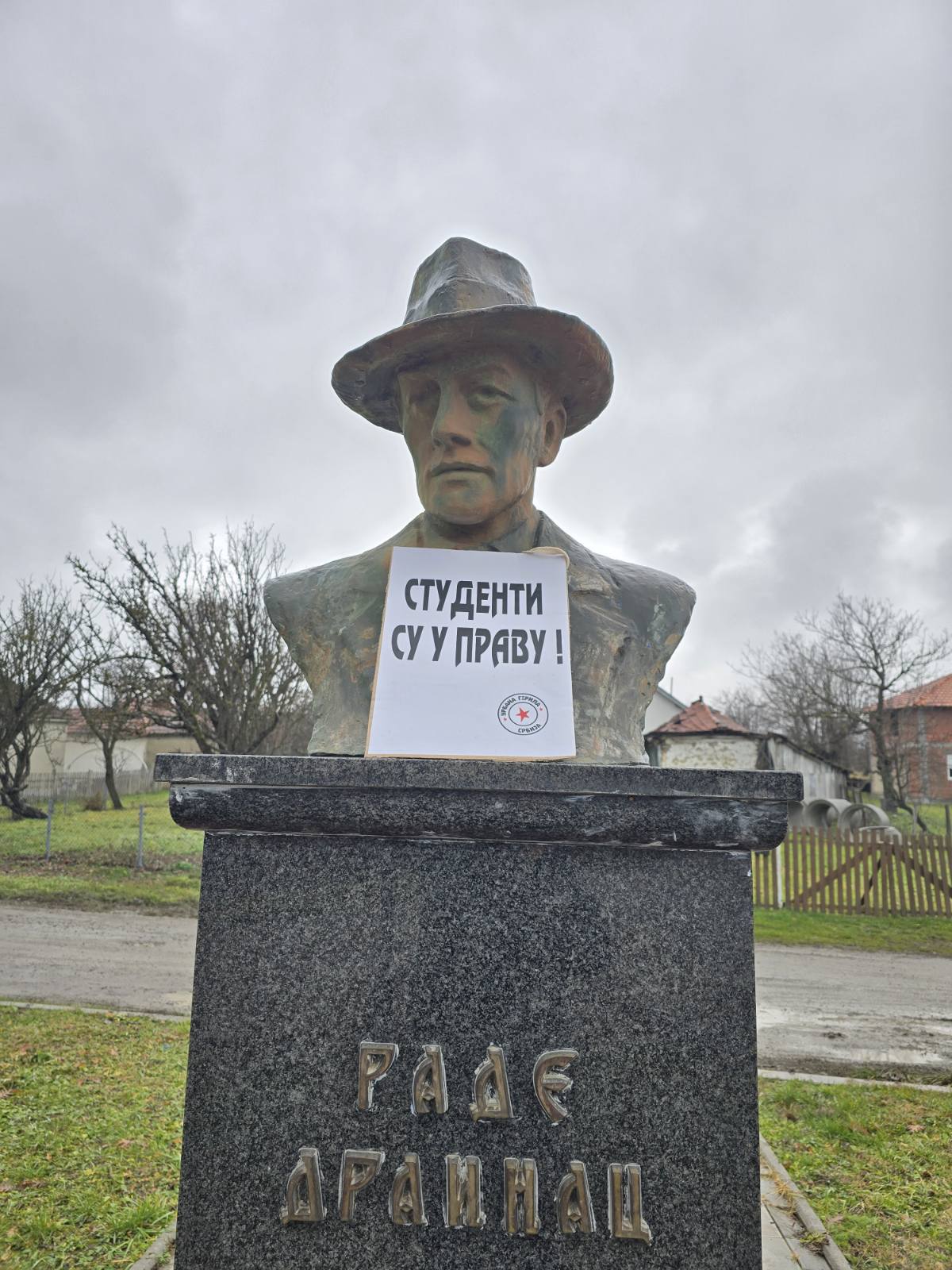 Širom Srbije studenti su u blokadama, a danas su ih podržale mnoge poznate ličnosti, kažu “gerilci”.Reč je o njihovom performansu, u sklopu kojeg su postavili poruke podrške na spomenicima u Nišu, Prokuplju, Leskovcu, Pirotu, Blacu i drugim gradovima.