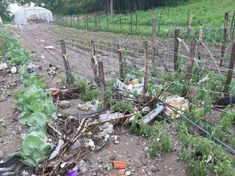 Meštanin Dušan Mikić ističe da mu je bujični potok, koji se za nekoliko minuta pojavio tokom sinoćnjeg nevremena i jake kiše, praktično uništio čitav trud i rad i naneo ogromnu štetu, jer su uništeni plastenici sa sezonskim povrćem jedini izvor prihooda za njega i njegovu porodicu.