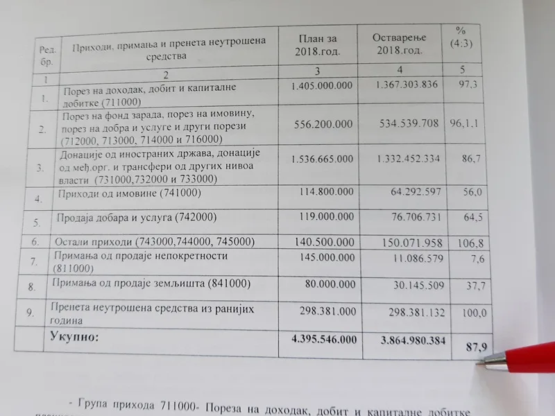 Leskovački budžet za 2018. godinu realizovan je sa 88 %, a budžet je bio planiran sa 4,3 milijarde dinara.