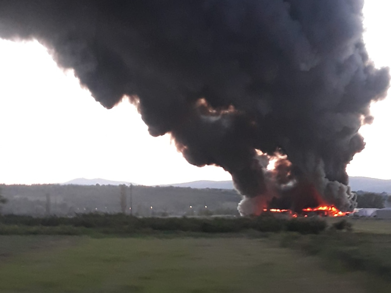 Kako javlja foto-reporter Južnih vesti sa lica mesta, vatrogasci drže požar pod kontrolom, akcija gašenja i dalje traje, dim se smanjuje, a veliki razmak između magacina koji gori i ostalih skladišta za sada ne dozvoljava vatri da se proširi.