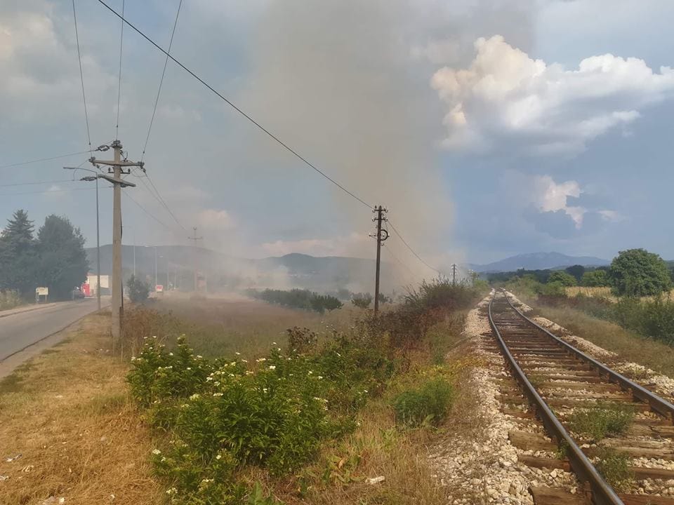 Ekipe vatrogasaca su na terenu i gase požar, a kako kažu, vatrom je zahvaćena velika površina oko pruge.