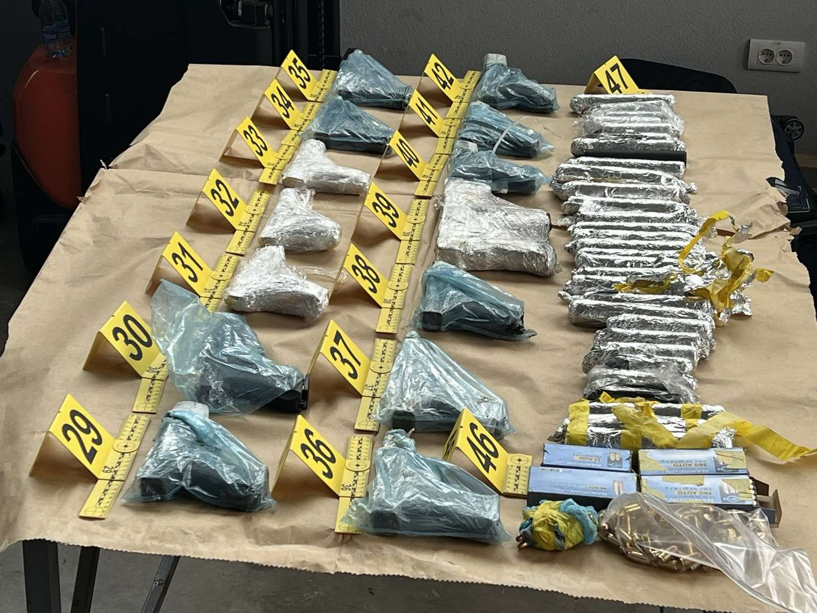 Ispod i u samim sedištima, kao i ispod oplate točkova pregledanog automobila, carinici su na administrativnom punktu Merdare otkrili pravi arsenal oružja – 45 komada vatrenog oružja, 31 prigušivač za vatreno oružje i 367 metaka.