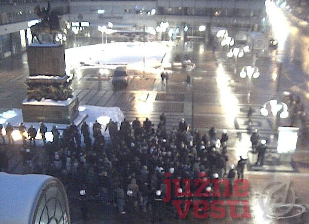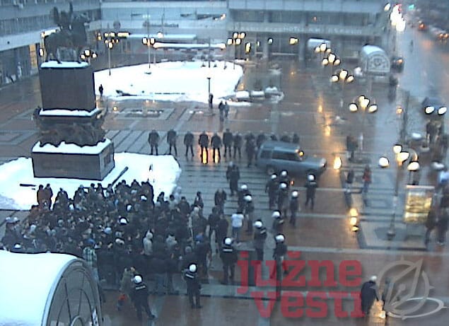 Oko 17 sati na Trgu Kralja Milana pojavilo se desetak žandarma u punoj opremi, koji su ubrzo dobili pojačanje.