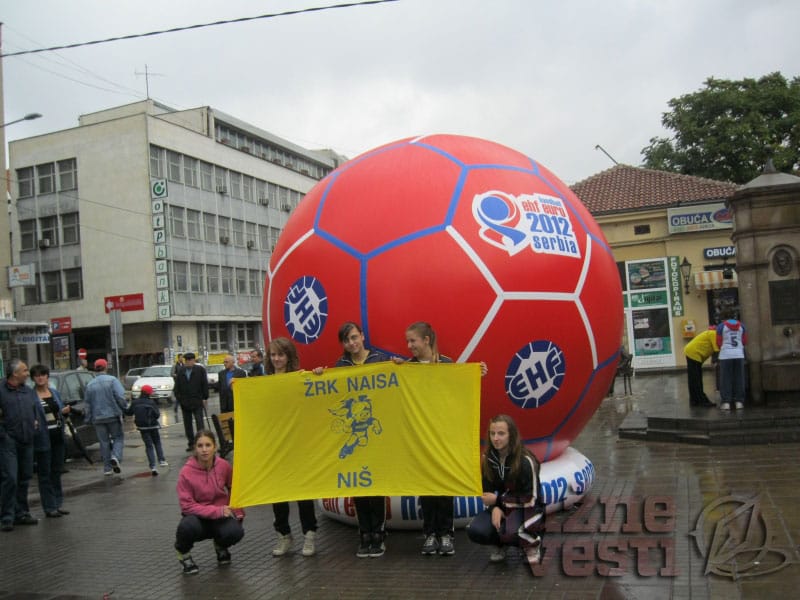 Velika rukometna lopta koja je u centru Niša postavljena zbog promocije Evropskog prvenstva u rukometu, ponovo je izbušena.