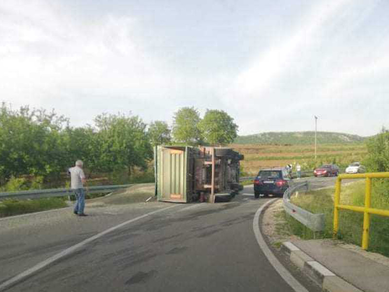 Policiji je nezgoda prijavljena u 18:20, a kako kažu, prevrnuo se kamion „man“ zaječarskih registracija.