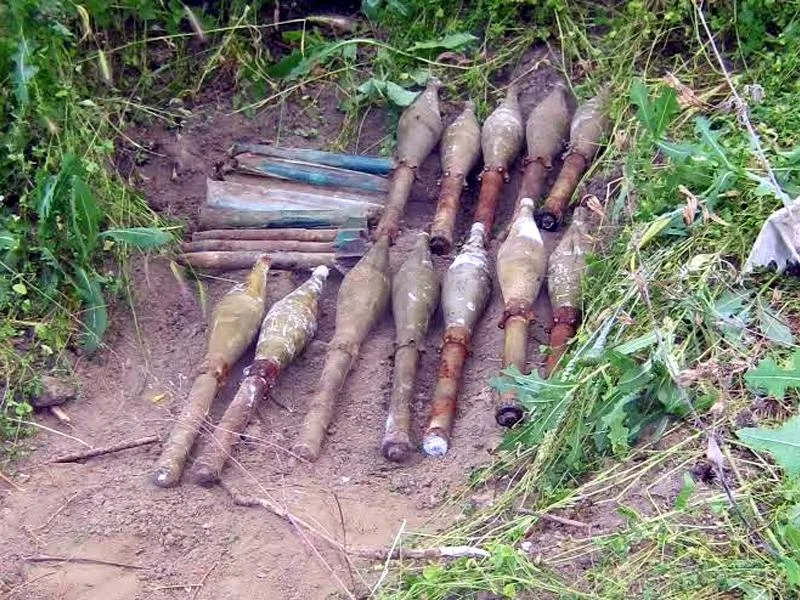 U tri plastična džaka nalazilo se 12 mina za ručni bacač, tri trenutne tromblonske mine i 6 barutnih punjenja za ručni bacač.