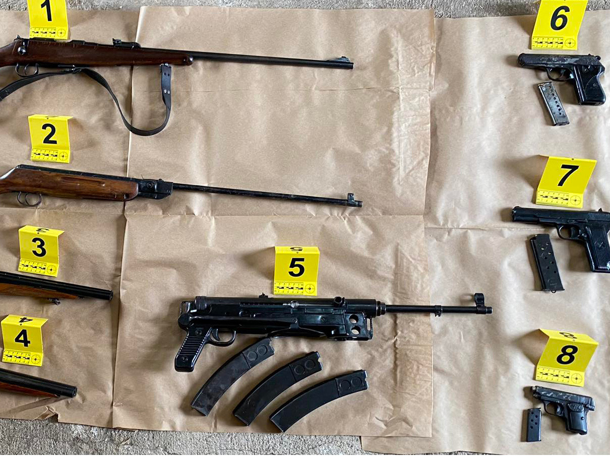 Automatsku, malokalibarsku i vazdušnu pušku, tri pištolja, dva krateža lovačke puške, ručnu bombu, prigušivač, 307 metka različitog kalibra i osam patrona za lovačku pušku, policija je pronašla u kući u okolini Niša.