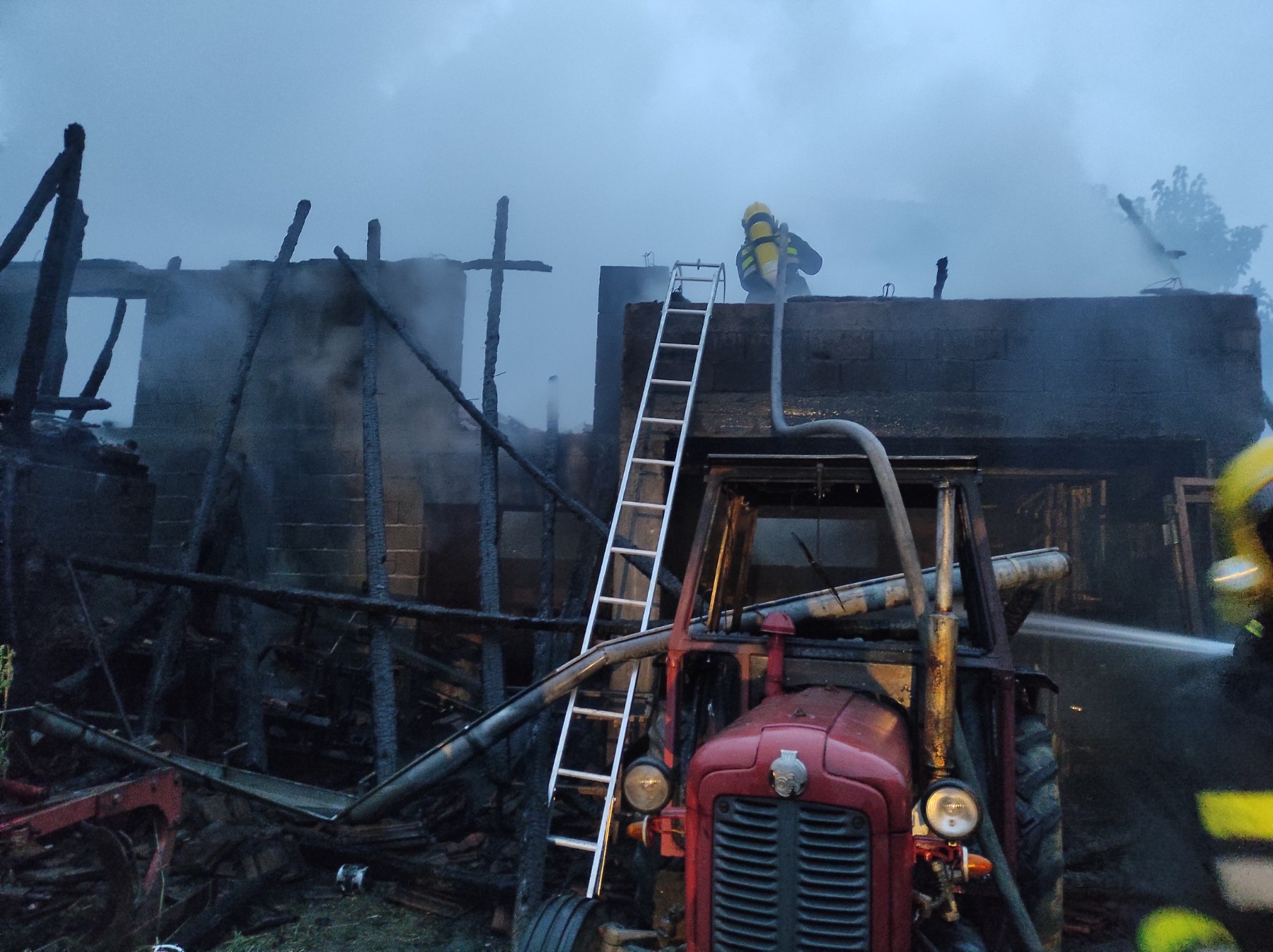 Izgorele su brojne radne mašine, pokućstvo, a vatra je delimično zahvatila i traktor koji se nalazio u objektu.