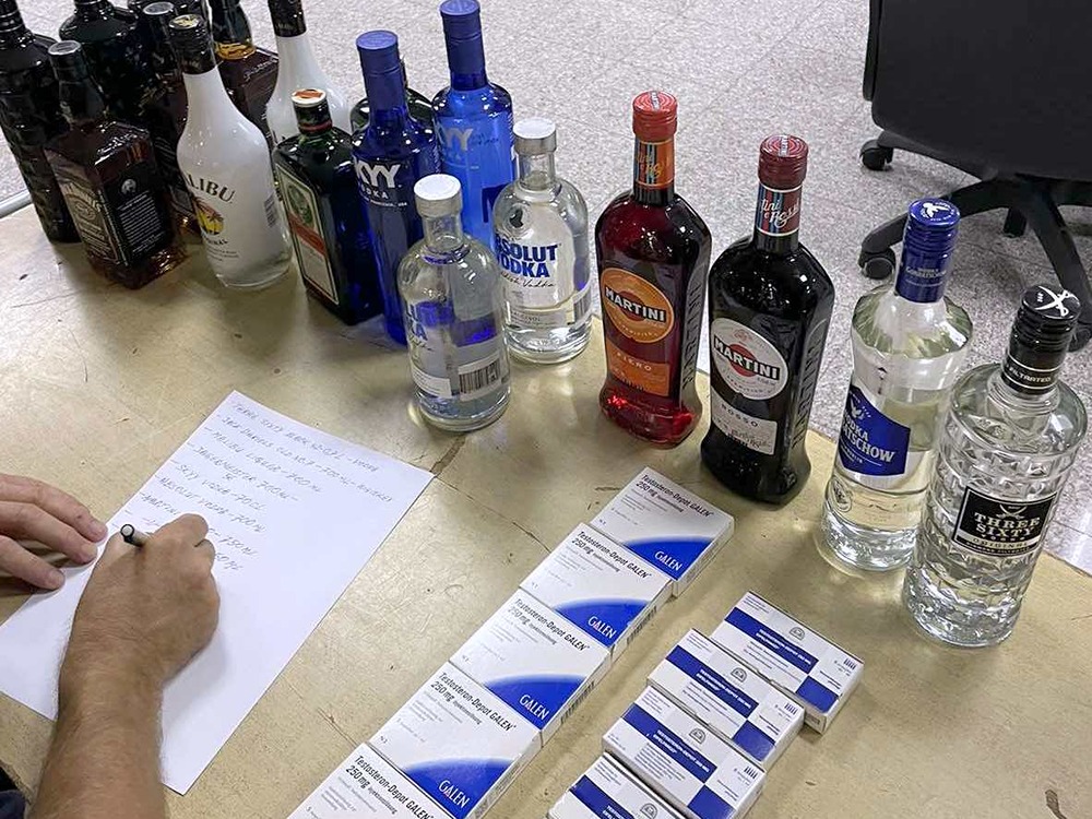 Daljom kontrolom, carinici su u koferima i torbama sa garderobom našli i 18 flaša viskija, votke, likera, koktela i drugih alkoholnih pića, kao i 75 ampula anaboličkih steroida Testosteron Depot.