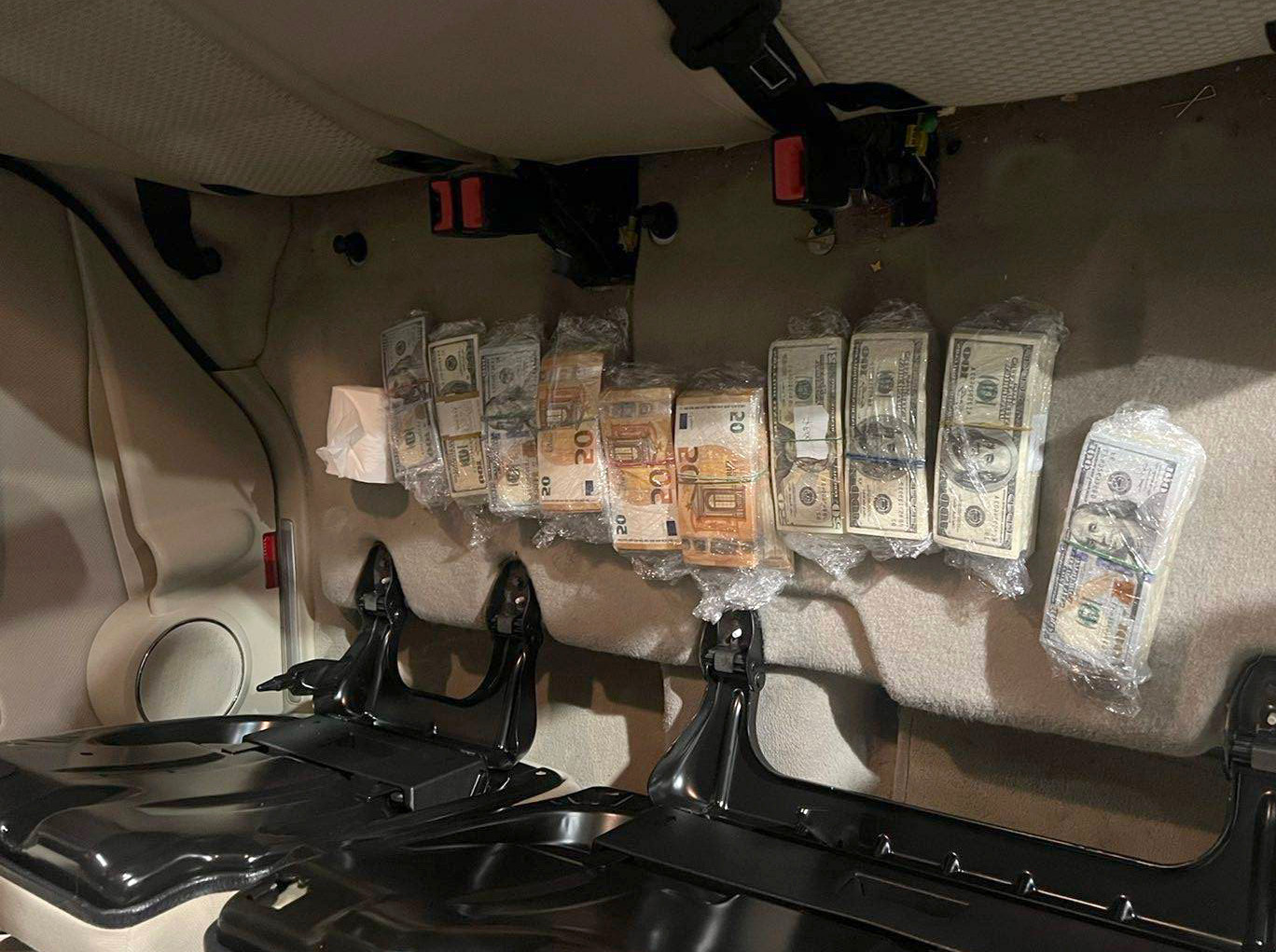 Policija je na Graničnom prelazu Gradina pregledom automobila marke „mercedes“ u kojem su se nalazili osumnjičeni, ispod sedišta vozila pronašla 77.950 evra i 185.500 američkih dolara za koje su, kako se sumnja, O. Š. i O. K. znali da potiče od kriminalne delatnosti – saopštavaju iz MUP-a.