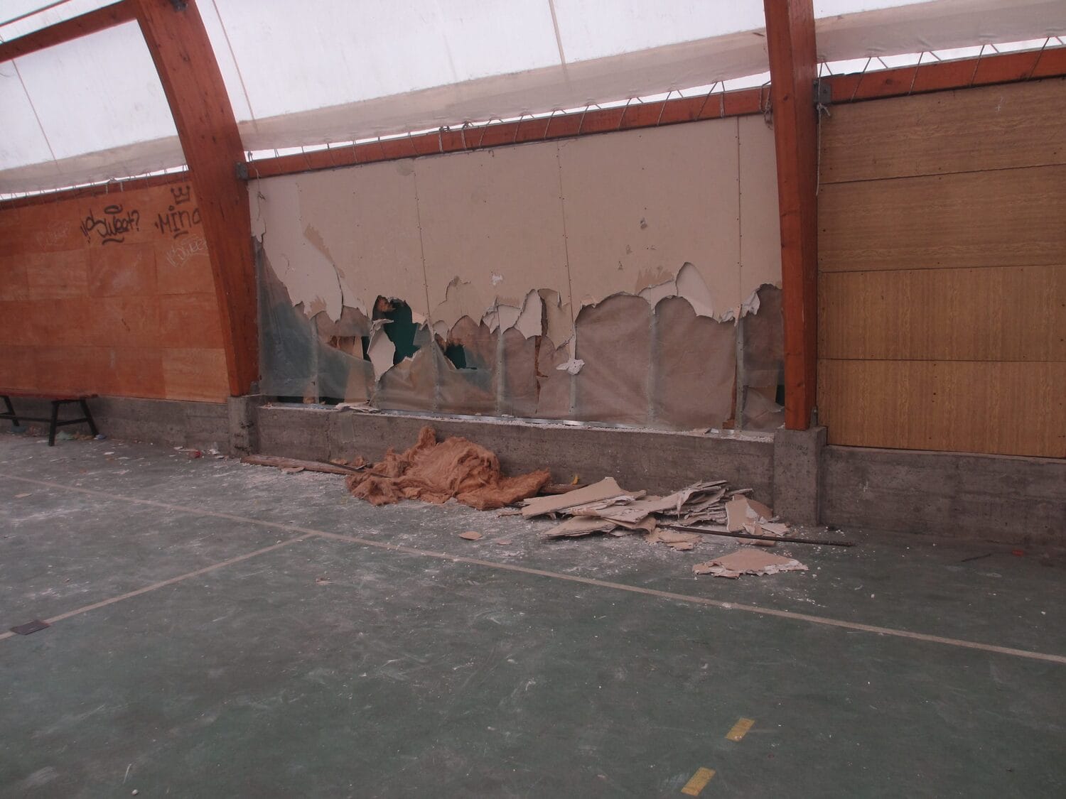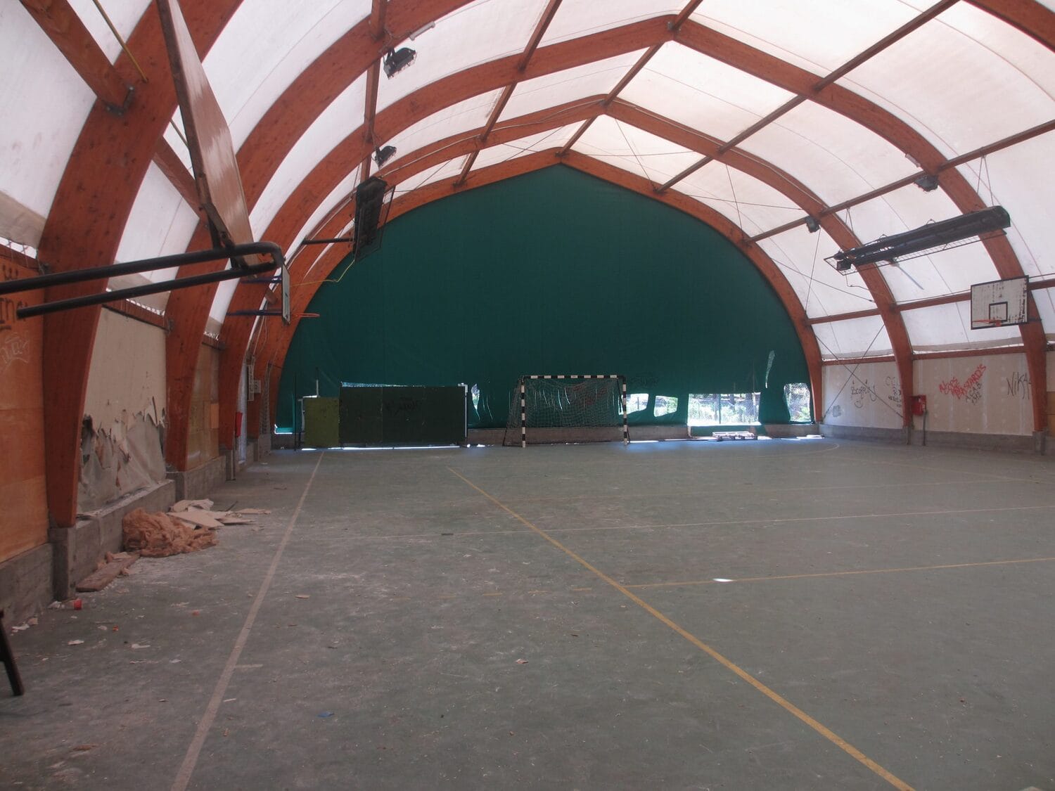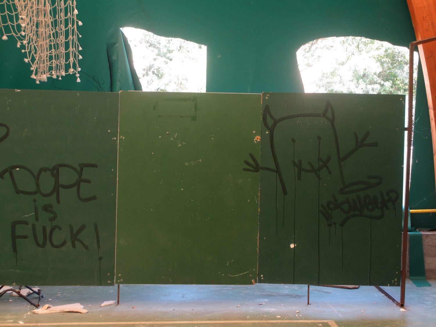 Cerada balon sale je isečena na mnogo mesta, a nekoliko parčeta je potpuno odstranjeno, pa su na zidovima i velike rupe. Osim toga, unutra su ispisani grafiti, slomljeni predmeti, a jedna školska klupa je čak završila u košu.