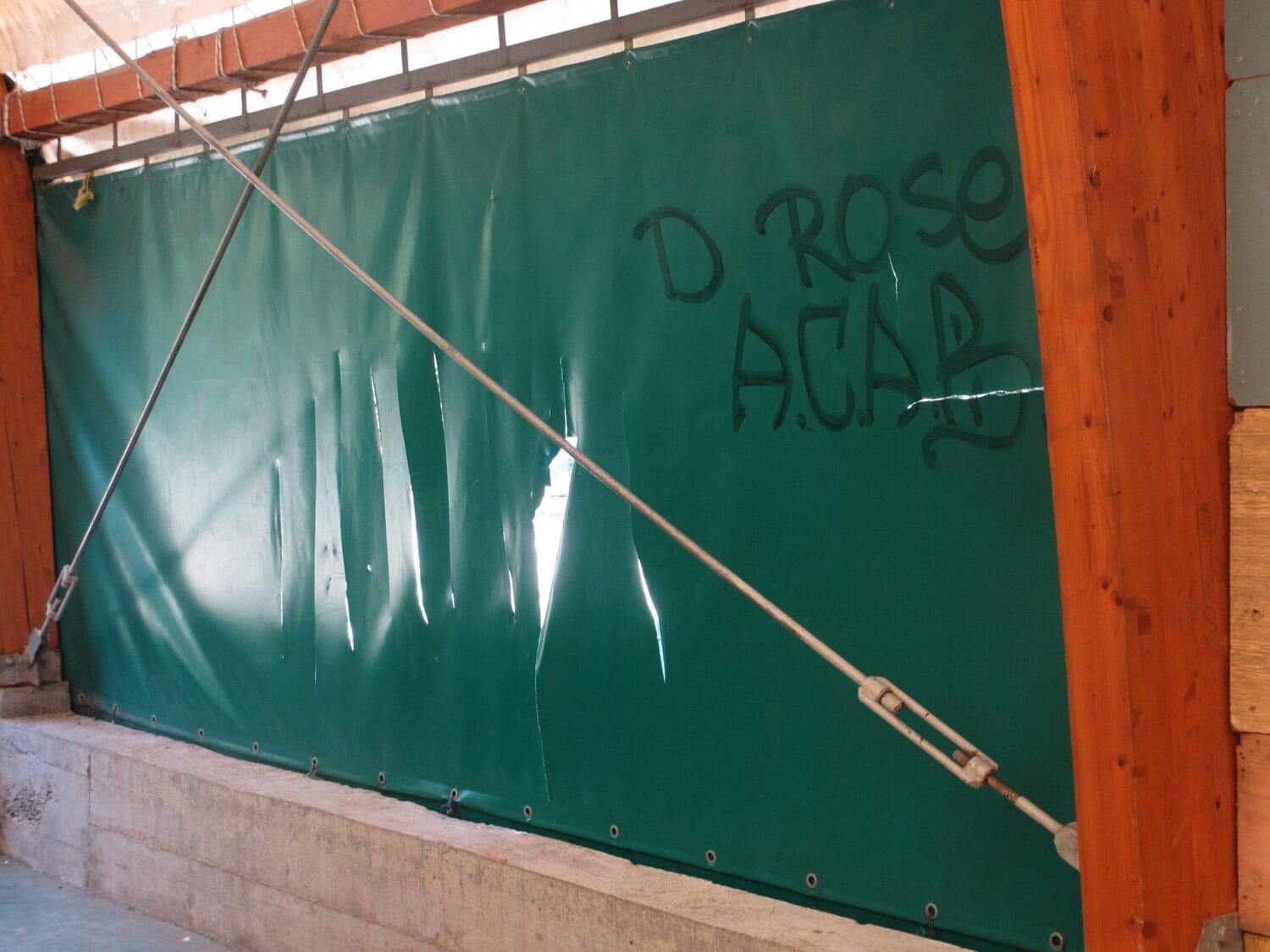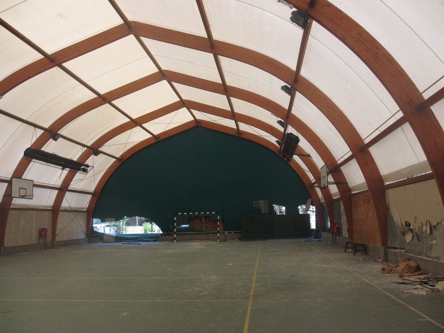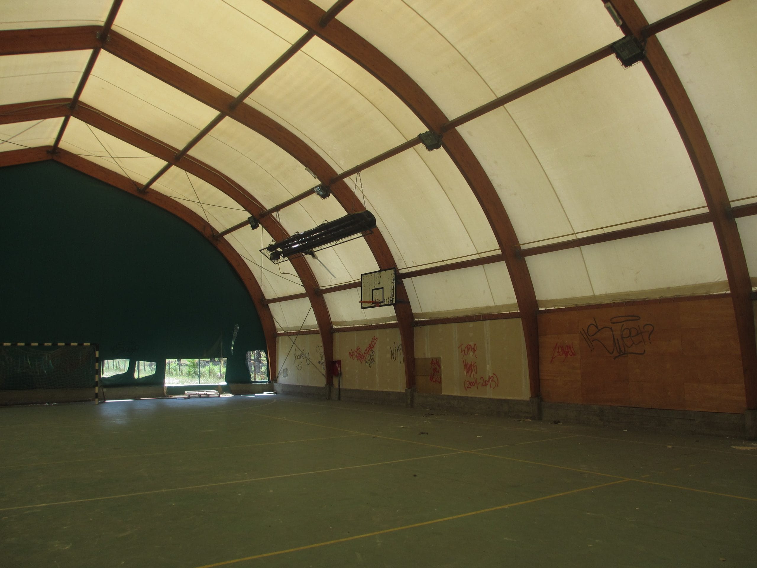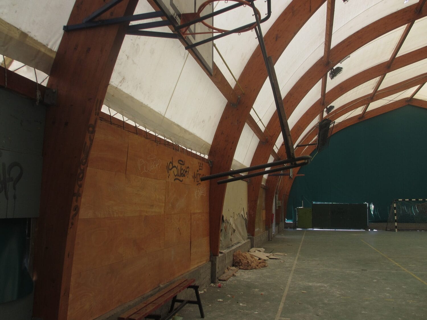 Cerada balon sale je isečena na mnogo mesta, a nekoliko parčeta je potpuno odstranjeno, pa su na zidovima i velike rupe. Osim toga, unutra su ispisani grafiti, slomljeni predmeti, a jedna školska klupa je čak završila u košu.