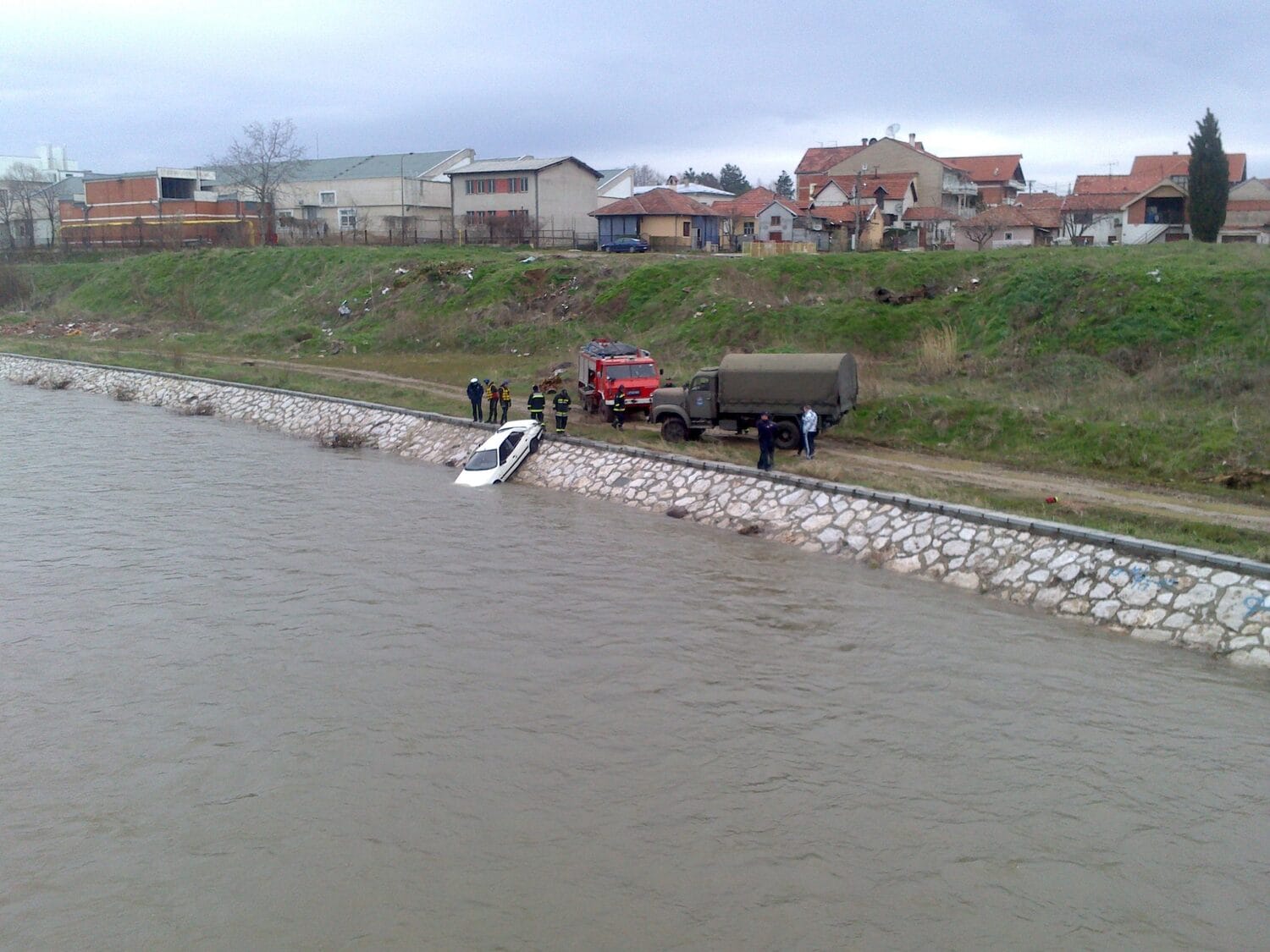 Kod Pešačkog mosta u Nišu, sa durlanske strane, vatrogasci su jutros oko 8:30h izvlačili beli automobil koji je upao u Nišavu.