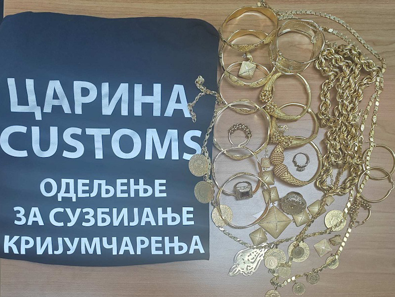 Pre dva dana su carinici zajedno sa policijom spečili pokušaj krijumčarenja više od 400 grama zlatnog nakita, a kažu da su taj slučaj otkrili na ulazu u Srbiju, kada je na kontrolu stigao bračni par stranih državljana, koji su putovali iz Bugarske ka Nemačkoj, u kombiju “VW Transporter“.Pronašli su u ručnom prtljagu 10 zlatnih narukvica, 3 zlatna lanca, jednu ogrlicu, 3 prstena i 3 para minđuša, ukupne težine 418 grama.Na pitanje carinika da li imaju nešto da prijave za carinsku kontrolu, vozač i njegova supruga su izjavili da sa sobom nose samo lični prtljag. Međutim, sumnjajući u njihovu izjavu, carinici su odlučili da detaljno pregledaju vozilo i tada su u tašni vozačeve supruge pronašli vrećicu punu zlatnog nakita koji putnici nisu prijavili – navode iz Uprave carina.