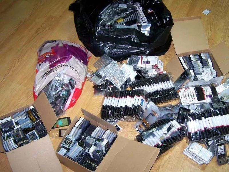 On je sa sobom nosio gotovo 700 baterija za mobilne telefone, skoro 200 ekrana osetljivih na dodir, preko 100 običnih ekrana, oko 130 kućišta za mobilne telefone, a bilo je i poklopaca za ajfon, kablova i futrola.