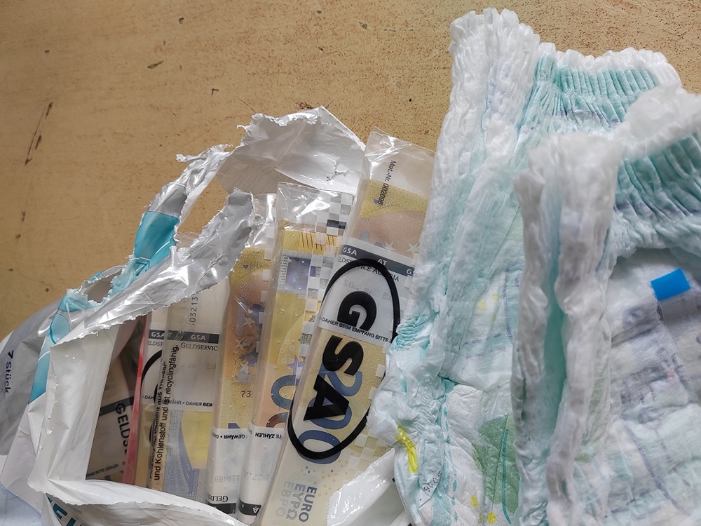 Međutim, u prtljagu je u torbi sa dečijim stvarima otkriveno i pakovanje pelena koje je poslužilo kao mesto za skrivanje neprijavljenih deviza.