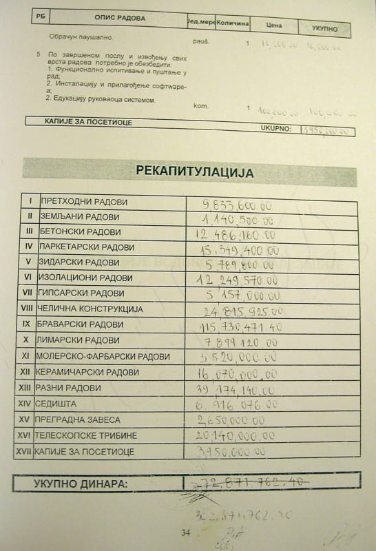 Zbog toga i dalje je nezponato zbog čega je predračun rađen na računaru, a krajnje vrednosti unošene rukom. Takođe, ostaje nejasno i kako je došlo do greške u sabiranju od 230 miliona (bez PDV), kada je samo jedan od sabiraka 115 miliona, a izračunati zbir 73 miliona.