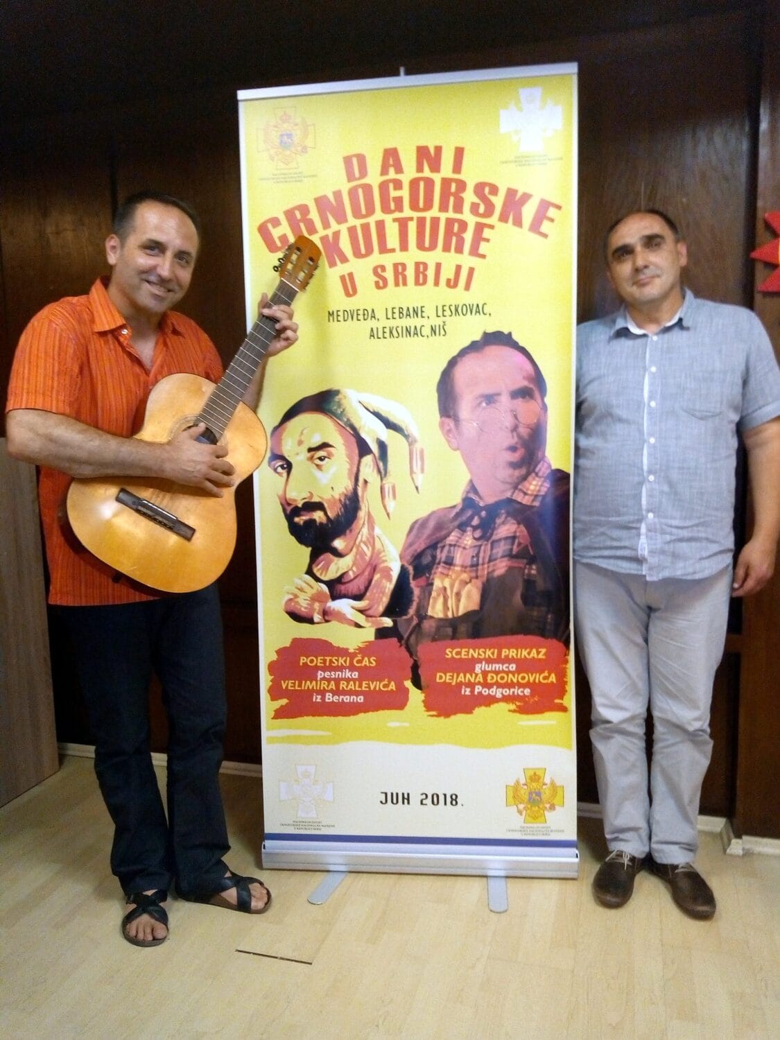 Crnogorski dečiji pesnik i glumac su, kako navode organizatori, izveli poetski čas i scenski prikaz za najmlađe 11. i 12. juna. Posetili su domove kulture u Medveđi, Lebanu, Leskovcu i Aleksincu, kao i dečije odeljenje Narodne biblioteke „Stevan Sremac“ u Nišu.