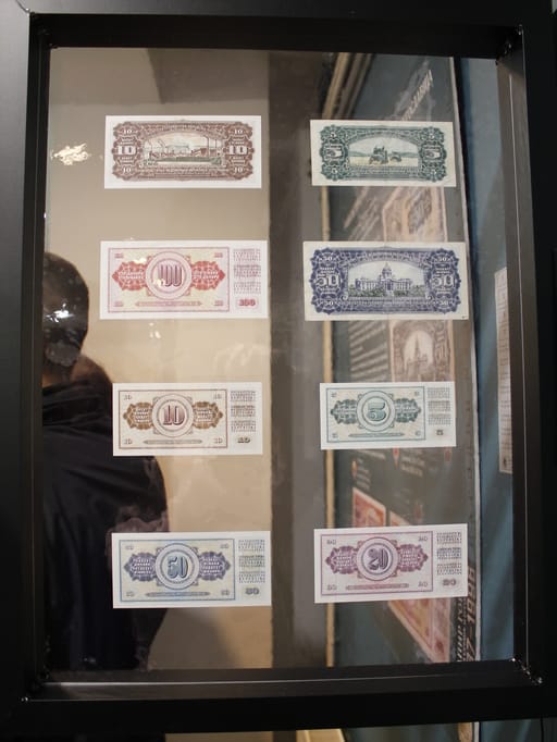 Ovo je inače Dimitrijevićeva prva samostalna izložba, ali, kako kaže, ceo tim Narodnog muzeja pomagao mu je u pripremi. Novčanice je prikupljao od Izraela do Slovačke, a muzejskoj kolekciji fale samo 4 za koje se nada da će ih nabaviti u narednom periodu.