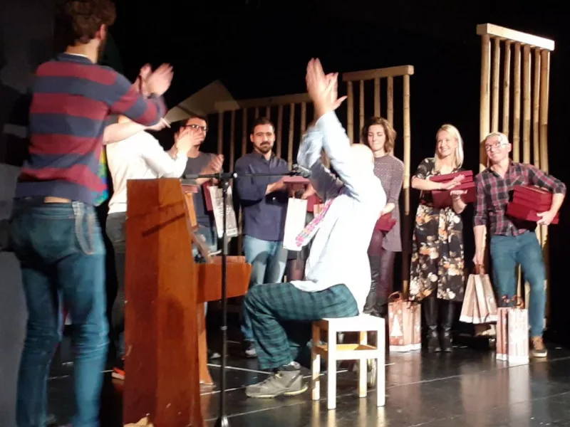 Čestitamo Mladenu i ostalim članovima glumačkog ansambla: Srđanu, Mirjani, Davorinu, Tomi, Dejanu, Mariji i Jeleni. Čestitamo tehničkom delu ansambla: Sonji, Ivanu, Aleksandru, Emilu, Oti, Goci, Milanu i Milanu, reditelju Dragoslavu Todoroviću, ostalim članovima autorskog tima: Srđanu, Marini, Irini i Vladimiru i direktorki Milici Radulović – piše na Fejsbuk stranici Pozorišta lutaka Niš.