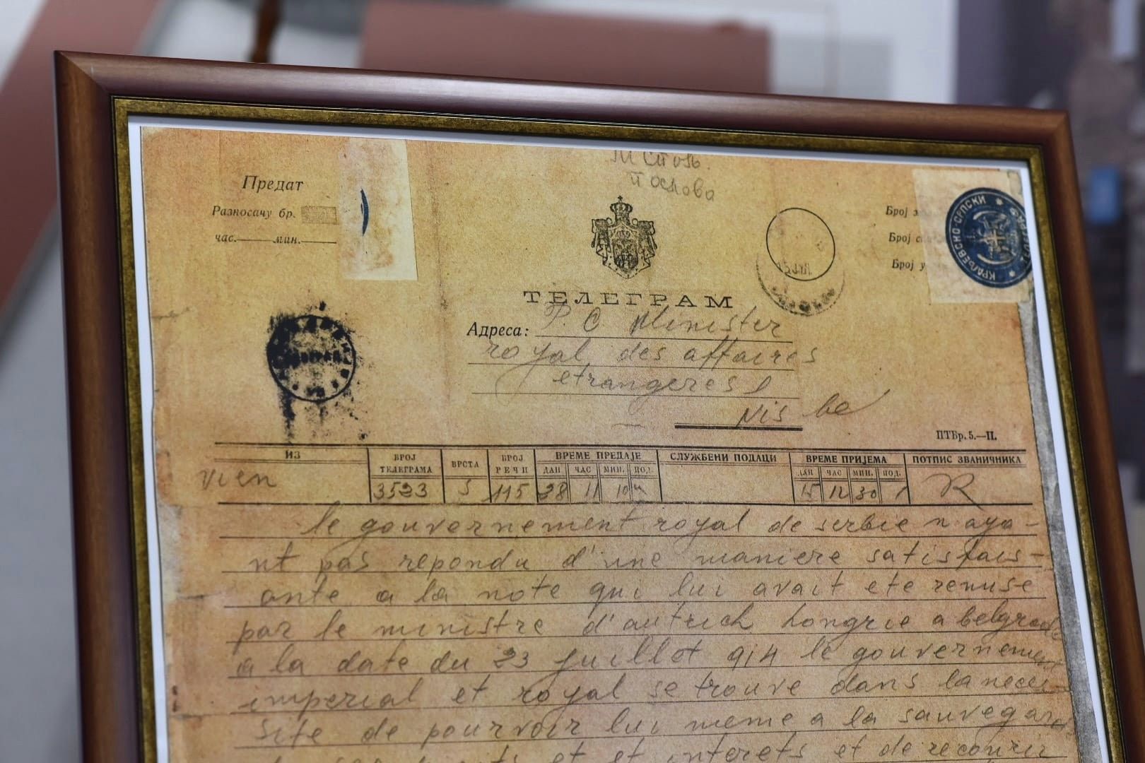 Kopije Ultimatuma Austrougarske Srbiji, Koncepta Odgovora srpske Vlade na Ultimatum i Telegrama objave rata ljubitelji istorije imaće priliku da pogledaju do 28. jula u Istorijskom arhivu u Nišu.