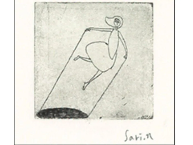 Na njenim majušnim bakropisima nalazimo zvezde prosute iz šarenih lepeza, zapažamo kako se leti sa kišobranom u ruci, nailazimo na kućice iza čijih nas brojnih prozora gledaju nevidljive oči – primećuje Palanski.