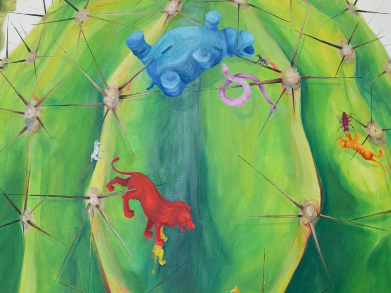 Svoje razočaranje u društvo, ističu, umetnica prikazuje sigurnim linijama, svetlim i sočnim bojama, te je vedar prizor dopunjen dozom skrivenog sarkazma.