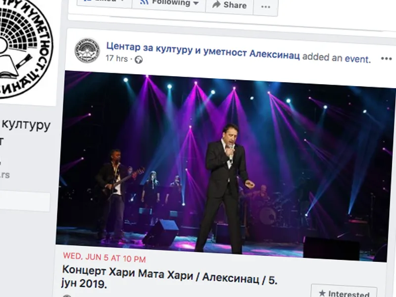 Na Dan Opštine Aleksinac, 5. juna, na stadionu za male sportove mladost “Taš” od 22 sati nastupiće poznati sarajevski izvođač Hari Mata Hari, a ulaz na koncert je besplatan. Inače, aleksinačka Opština je povodom svog dana od 3. do 5. juna pripremila brojne događaje.