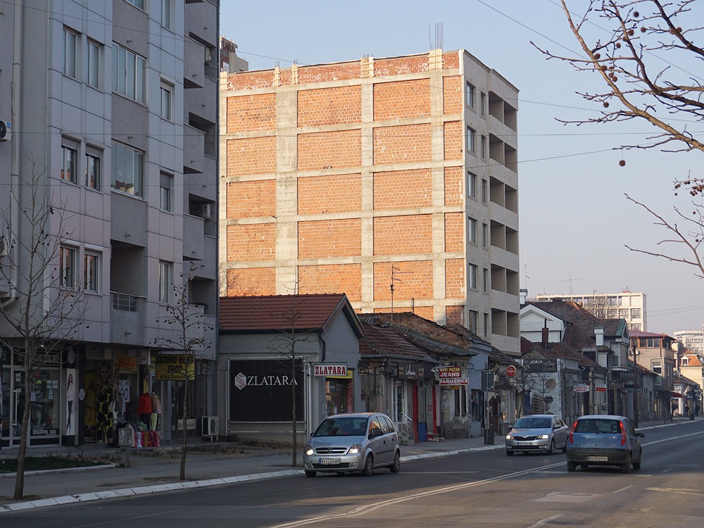 Volim svoj grad i mislim da pojedinacno u gradu ima lepih fasada ali realno mogu da kazem da grad sve vise lici na selo Buzescu u Rumuniji. Trg Kralja Aleksandra se narocito istice. Jeste u pitanju stara gradnja taj blok jednostavno kao celina ne lici na nista i mucno je videti ih i u prolazu. O funkcionalnosti istih objekata ne vredi ni da se prica.