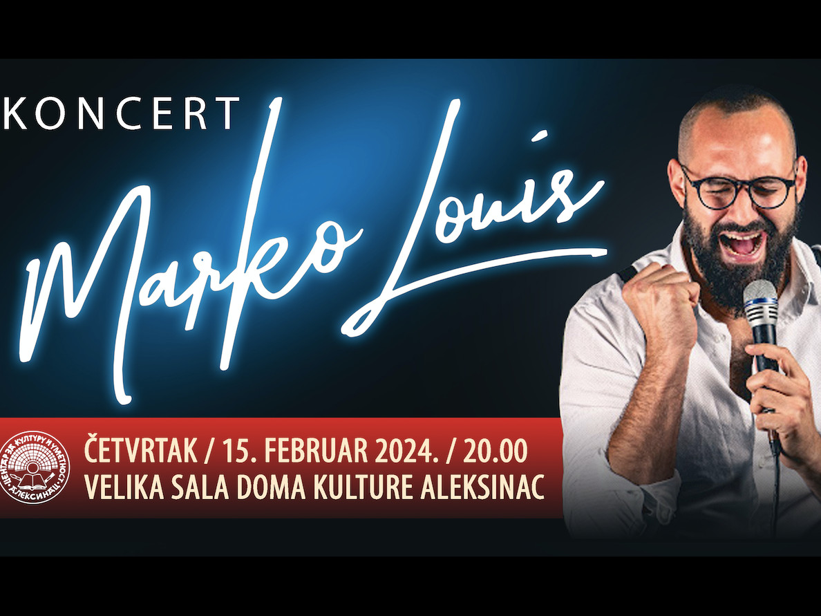 Poznati kantautor balkanske džez i soul muzike Marko Luis, nastupiće na Sretenje, 15. februara, u Domu kulture u Aleksincu.