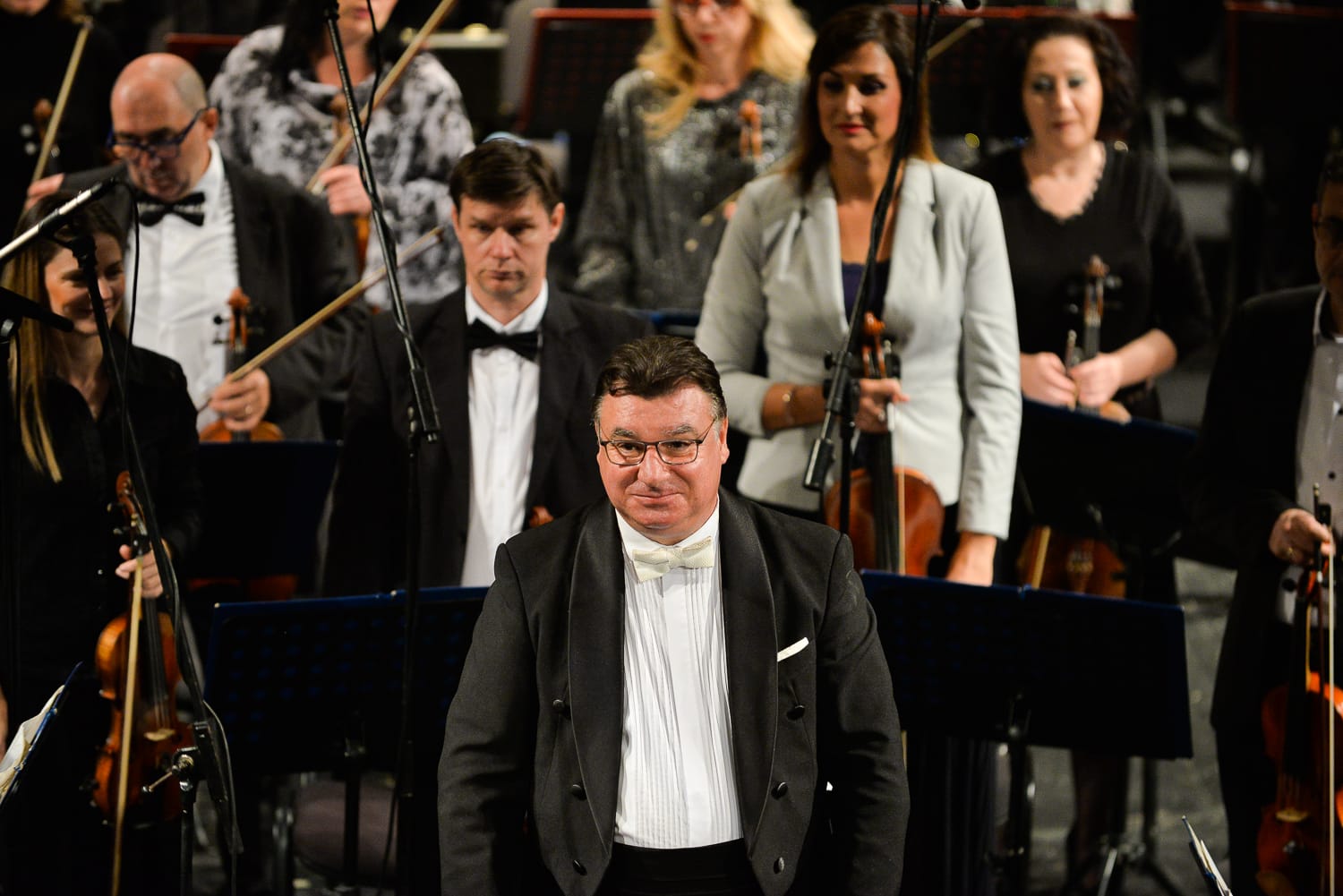 Ipak, pre nego što su dugim i glasnim aplauzom pozdravili Bogosavljevića, Simeonova i orkestar, ljubitelji klasične muzike posvedočili su siboličnom gestu jednog od osnivača 45 godina starog festivala Miroljuba Jovanovića. On je Vezenkoviću predao malu statuu violinskog ključa, uz reči da je on početak notnog zapisa, pa tako i početak onoga što će publika okusiti.