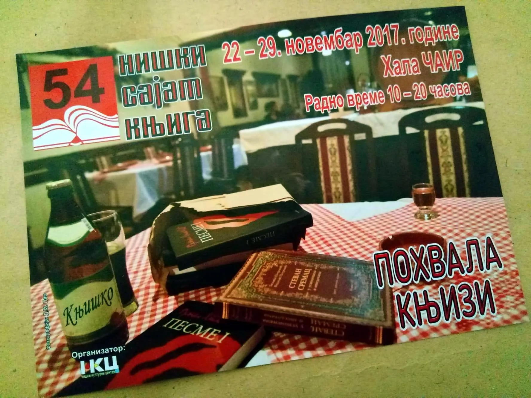 Umesto pozivnica, pojedinim građanima i funkcionerima pristigle su “pozivice” za 54. niški Sajam knjiga, a još jedno od grafičkih propusta Niškog kulturnog centra, prema mišljenju mnogih, su i flajeri na kojima su kafanski sto, knjige, a u centru pažnje “Knjiško” – pivska flaša koja svojim dizajnom podseća na „Niško pivo“. Direktor NKC-a Srđan Savić kaže da svako ima pravo na svoje mišljenje i kritiku, ali da on ne vidi ništa sporno u pomenutom flajeru.
