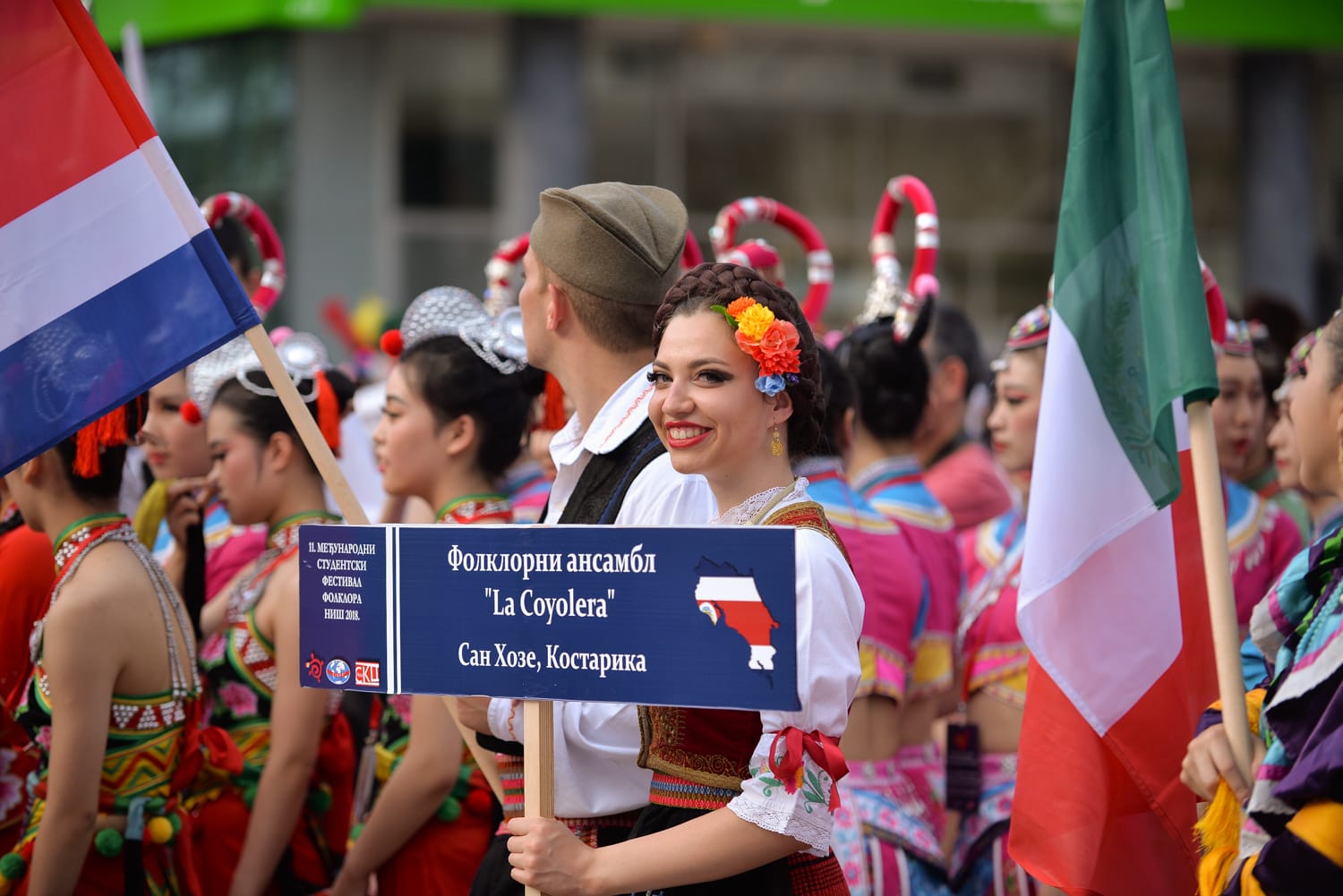 Uz bolivijsku muziku i šarene suknje, meksičke marijačije, nasmejane Kineskinje i bugarska kola, defileom folkloraca kroz Obrenovićevu ulicu, pa sve do Tvrđave, sinoć je na Letnjoj pozornici otvoren 11. Međunarodni studentski festival folklora u Nišu. Trajaće do petka, 20. jula.
