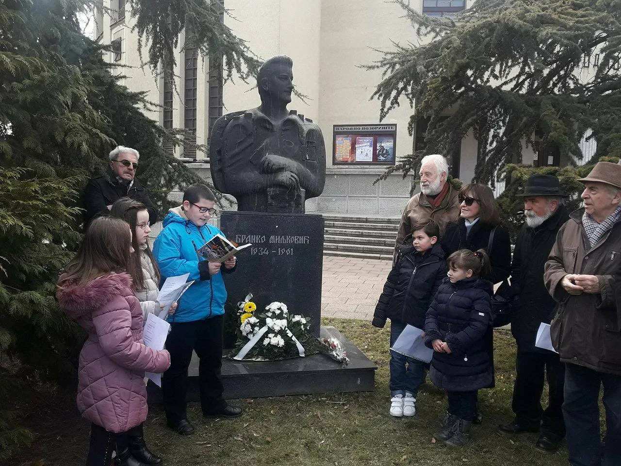 Đaci, prijatelji, školski drugari, ljubitelji stiha i poštovaoci dela Branka Miljkovića i ovog 12. februara okupili su se ispred platoa kod Narodnog pozorišta, a povodom 56 godina od njegove smrti. Oni su recitovanjem i polaganjem cveća na spomen bistu odali počast princu poezije.