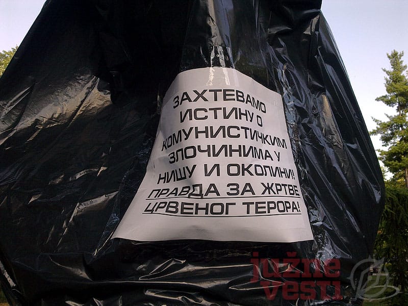 NIŠ – Spomen biste narodnim herojima u nekoliko niških parkova osvanule su sa navučenim crnim kesama i porukama o „komunističkim zločinima“.