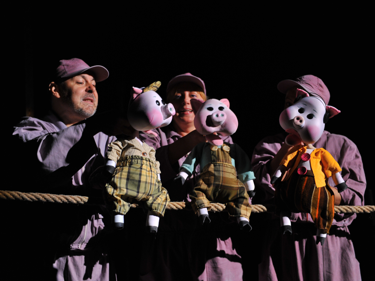 Lutkari koji igraju Tri praseta su Svetlana Mihajlović, Tatjana Milenković, Dejan Gocić i Slobodan Miljković.