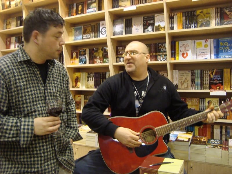 Uz dobro vino u knjižari „Laguna“ Saša Trajković, poznat kao Big Sale, svirao je na gitari pesme iz perioda koji opisuje roman, ali i numeru „Slava Svedržitelju“ koju je komponovao za ovu priliku.
