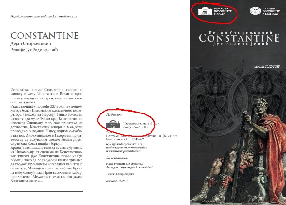 Ipak, vredi pomenuti da se na svim propagandnim materijalima za jedan od najvećih projekata niškog teatra u njegovoj novijoj istoriji, predstavu „Konstantin“, nalazi isključivo novi logo.