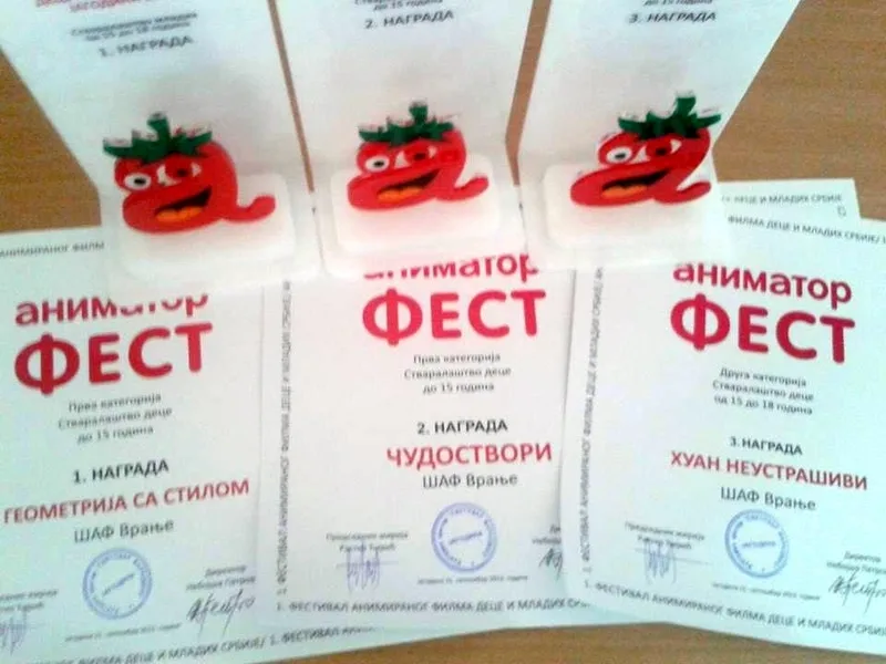 Na prvom Festivalu animiranog filma dece i mladih Srbije „Animator fest“ održanom u Jagodini Škola animiranog filma iz Vranja dobila je prve dve nagrade u kategoriji do 15 godina i to za filmove „Geometrija sa stilom“ i „Čudostvori“.