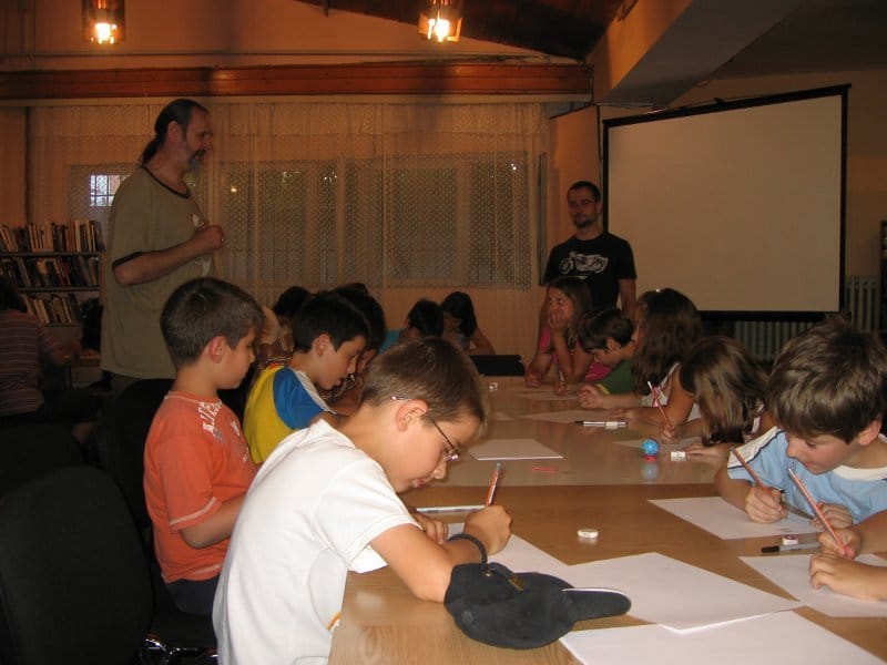 Sa polaznicima škole tokom vikenda radili su poznati strip crtači Vladimir Vesović i Bojan M. Đukić uz asistenciju Piroćanca Igora Krstića koji trenutno radi sa decom.