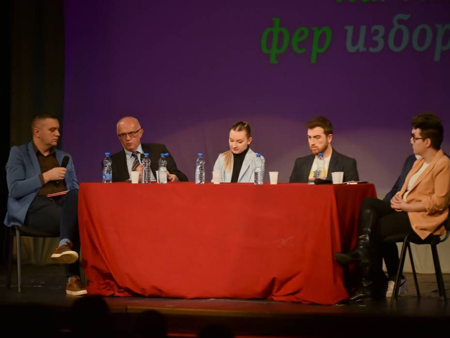 Na prvoj tribini kampanje za fer izbore govorili su advokat i bivši poverenik za informacije od javnog značaja Rodoljub Šabić, izvršna direktorka Građanskih inicijativa Maja Stojanović, kao i aktivisti grupe mladih “Borba” Emilija Milenković i Dimitrije Dimić. Moderator tribine bio je glavni i odgovorni urednik Južnih vesti Milan Zirojević.