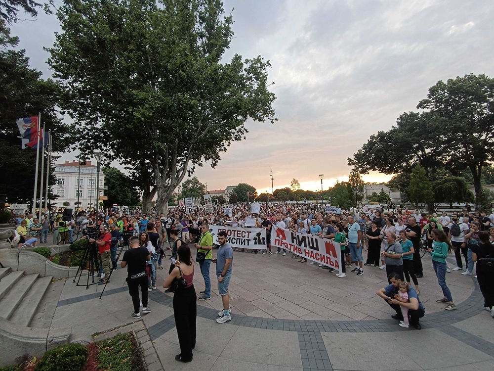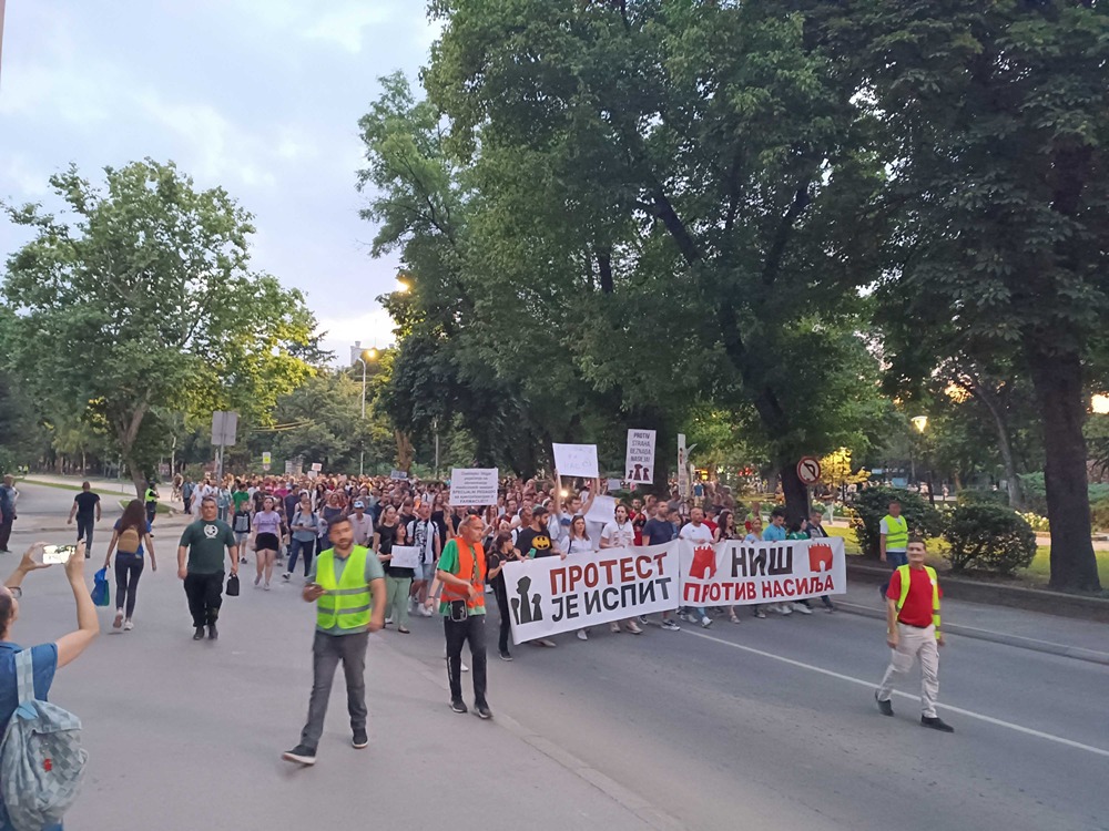 “Ostavke pa robija”, “Dragana, prebroji nas” i “Vučiću, ostavka” – uzvikivali su građani i ove nedelje na protestu “Srbija protiv nasilja” u Nišu, koji je završen polučasovnom blokadom pruge u Vojvode Putnika. Zahtevi su isti, a govorili su aktivisti Danijela Vujošević i Danijel Dašić, kao i student Pravnog fakulteta Dimitrije Dinić, koji je poručio da će štrajkovati glađu u Beogradu ako do 24. jula ne budu ispunjeni zahtevi.