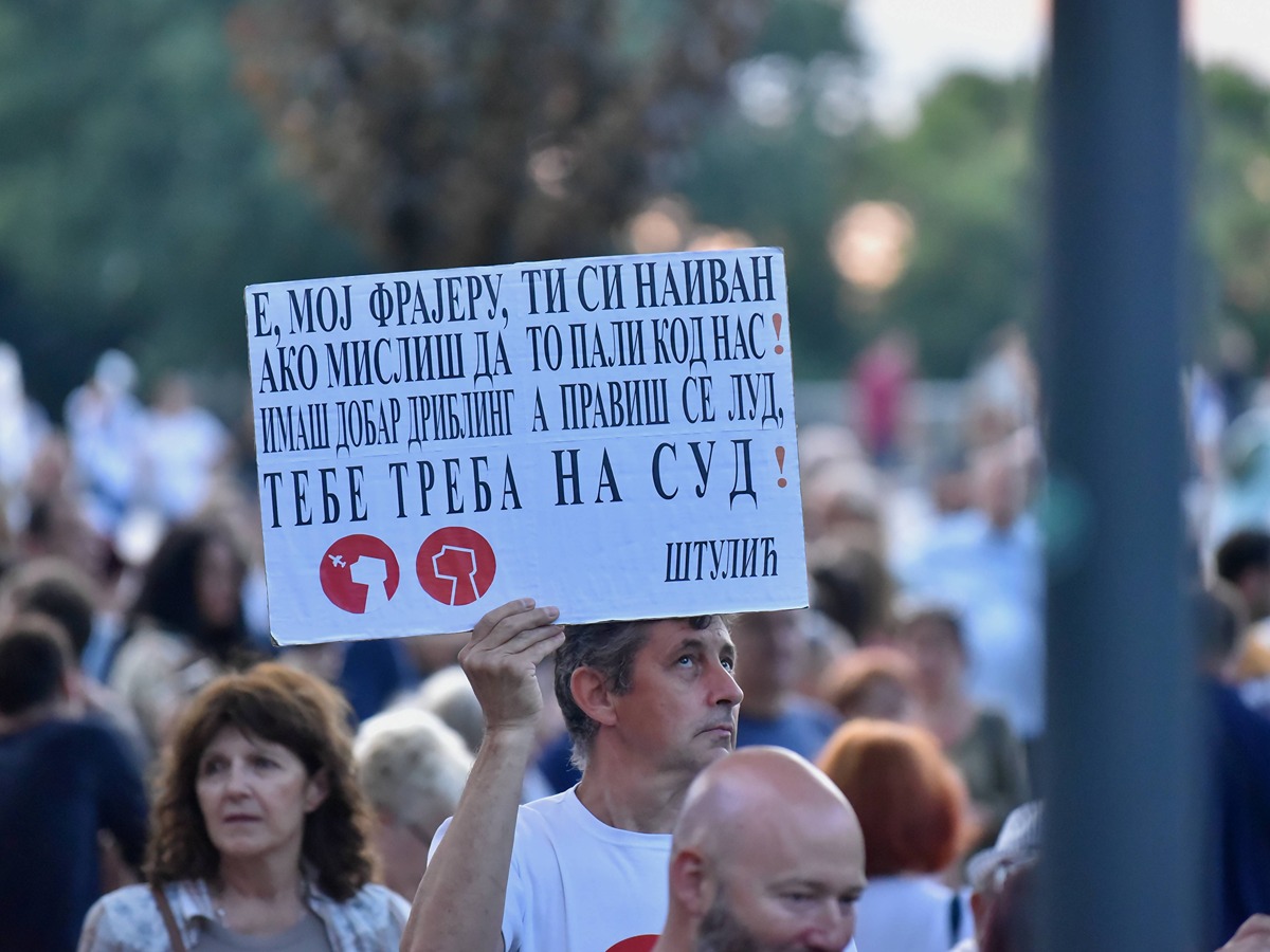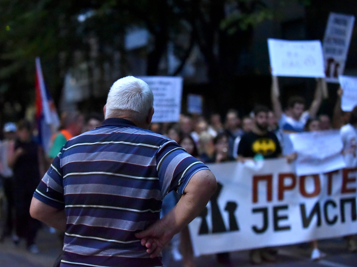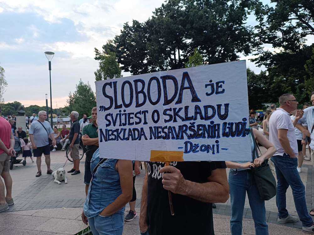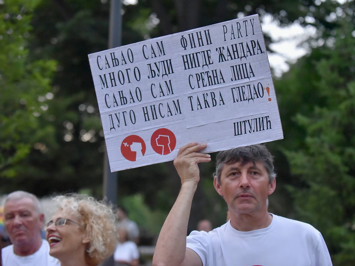 Okupljanje ispred Gradske kuće počelo je uz zvuke kompozicije Emocije Andrije Čikića, učenika koji je 3. maja ubijen u masovnoj pucnjavi u beogradskoj školi “Vladislav Ribnikar”.Građani su najpre zvižducima iskazali nezadovoljstvo radom lokalnih čelnika i republičke vlasti, a naročito time što Bratislav Gašić ostaje ministar unutrašnjih poslova.