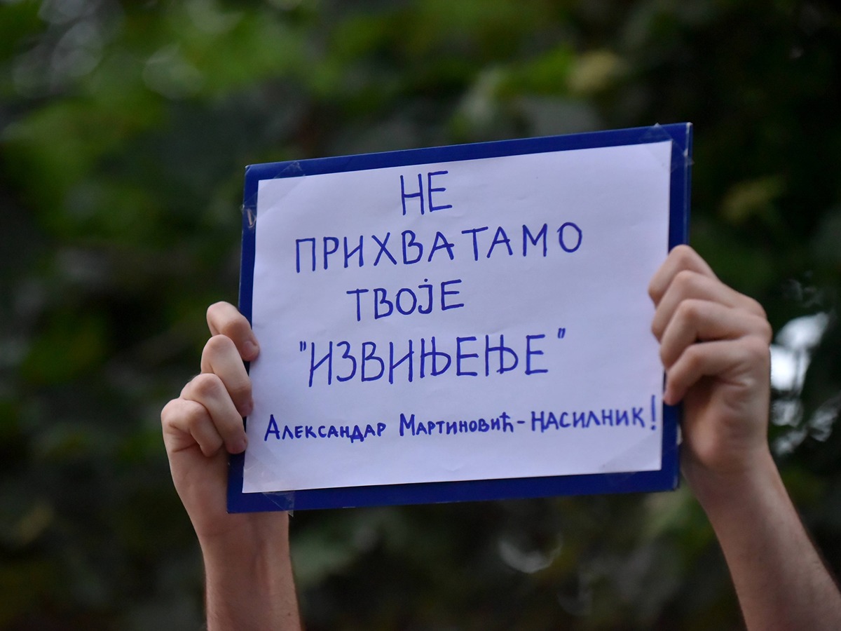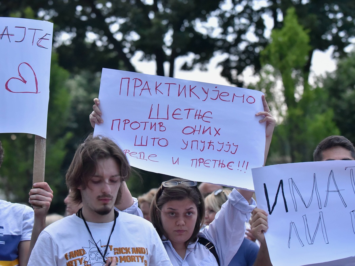 “Poručujem pripadnicima MUP-a, kako vidljivim, tako i onim nevidljivim, koji su ovde – sram vas bilo što niste stali iza svoje koleginice Katarine Petrović” – rekao je aktivista Danijel Dašić ispred Gradske kuće.Kolona se kretala Ulicom generala Milojka Lešjanina do Vardarske, gde je došlo do manjeg incidenta, kada je muškarac sa terase razmenio uvrede sa učesnicima skupa i gađao ih plastičnom čašom.