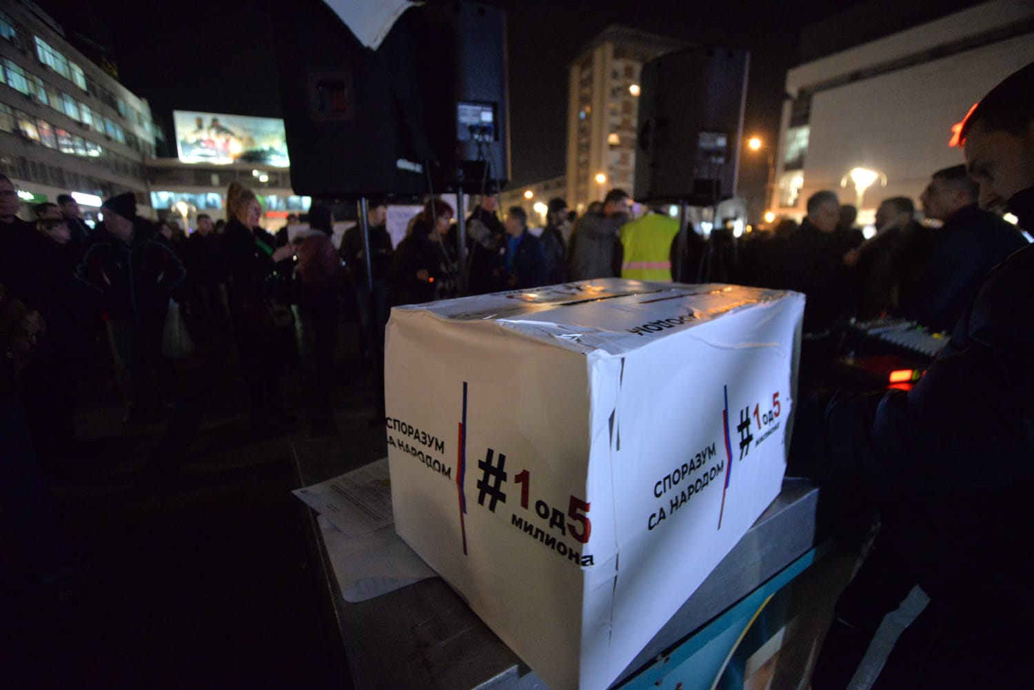 Pištaljke, pesma i transparenti, tako je počeo još jedan niški protest. Visoko u rukama jednog Nišlije stajalo je “Mi volimo ovu zemlju, ali vlast ne voli nas”. U kutiju nalik glasačkoj građani su ubacivali svako svoj potpisani primerak Sporazuma sa narodom koji je ranije usvojila opozicija.
