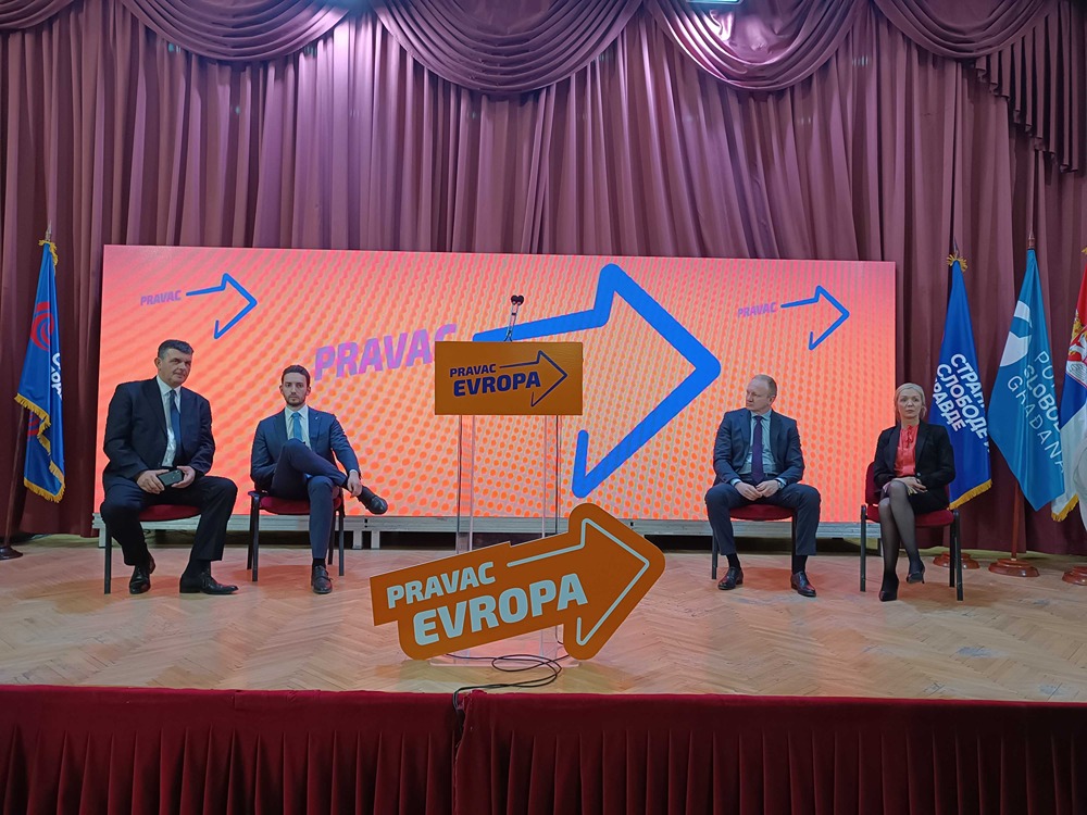 Na tribini je bilo reči o nedavno predstavljenom programu “Pravac Evropa”, za koji je predsednik SSP-a Dragan Đilas rekao da je nastao kao ideja zastavljanja haosa, uvođenja reda i pravila.Đilas kaže da, ako se situacija u Srbiji ne promeni, neće više biti odlazaka iz zemlje, već evakuacije i dodaje da građani Srbije ne treba da odlaze u Evropu, već da Srbija treba da bude deo nje.