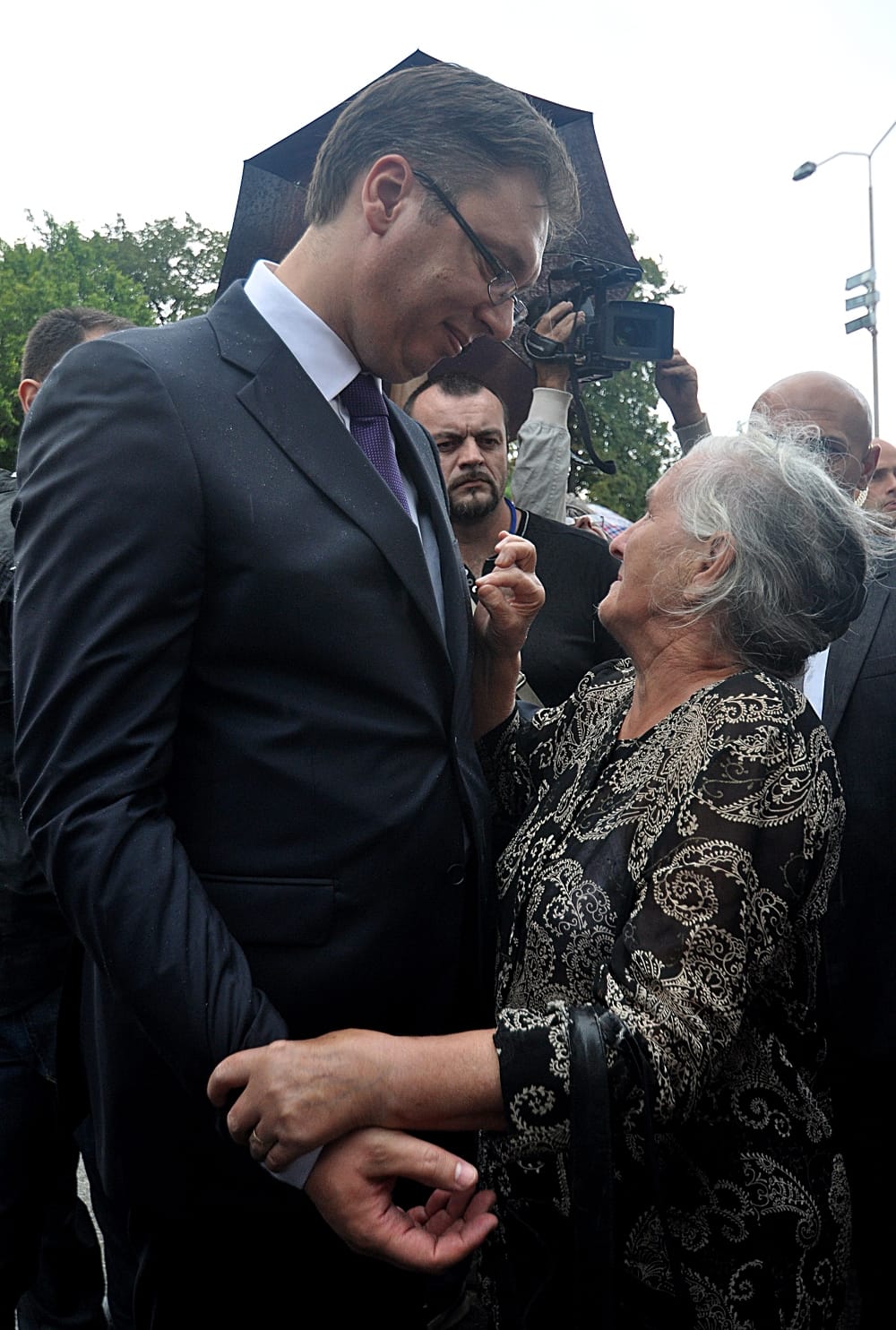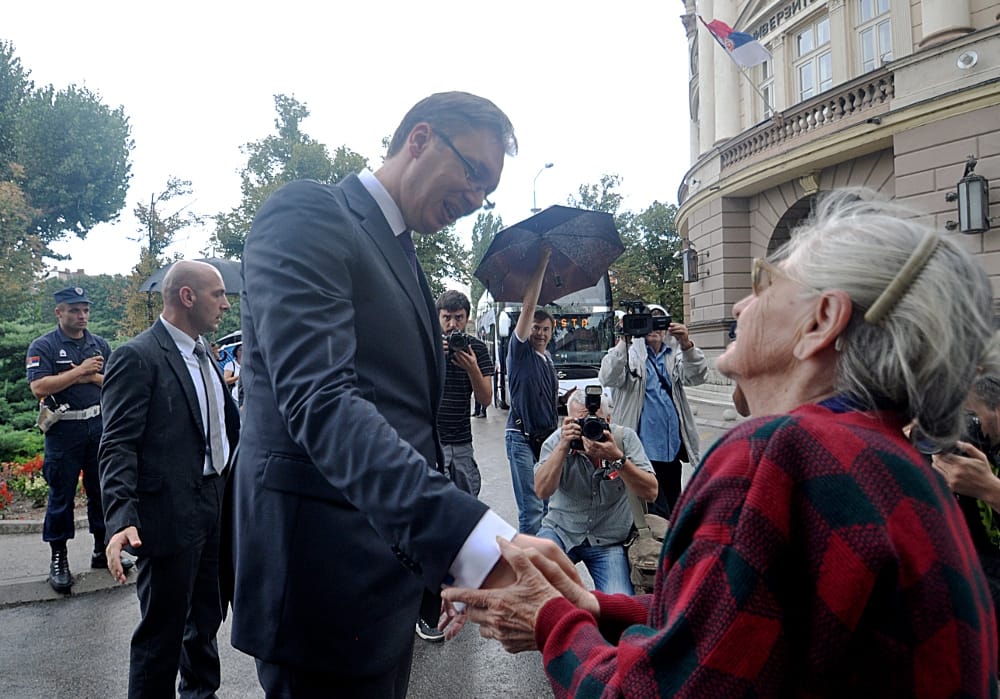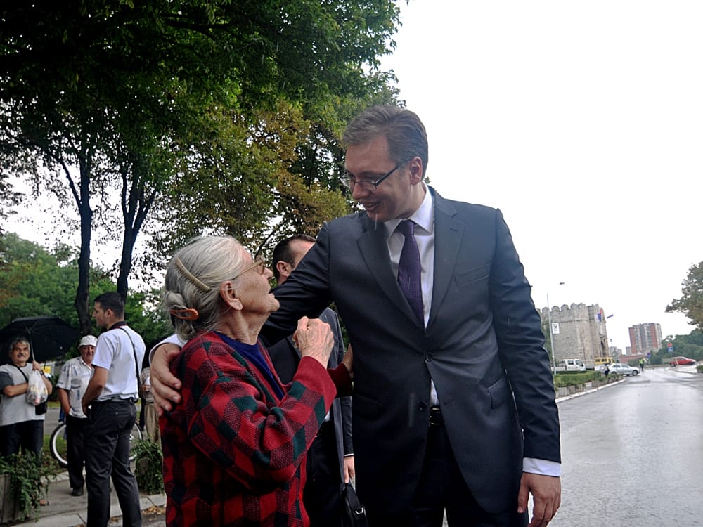 Uglavnom stariji građani tapšali su premijera Aleksandra Vučića po ramenu, rukovali se sa njim, hvalili ga, a neki među njima pokušali su i da ukažu na svoje probleme.– Volimo te! Najbolji si! – čulo se iz grupe ljudi koji su, i pored toga što su ulice pored zgrade Banovine bile zatvorene za pešake, našli način da se kroz park približe članovima Vlade.
