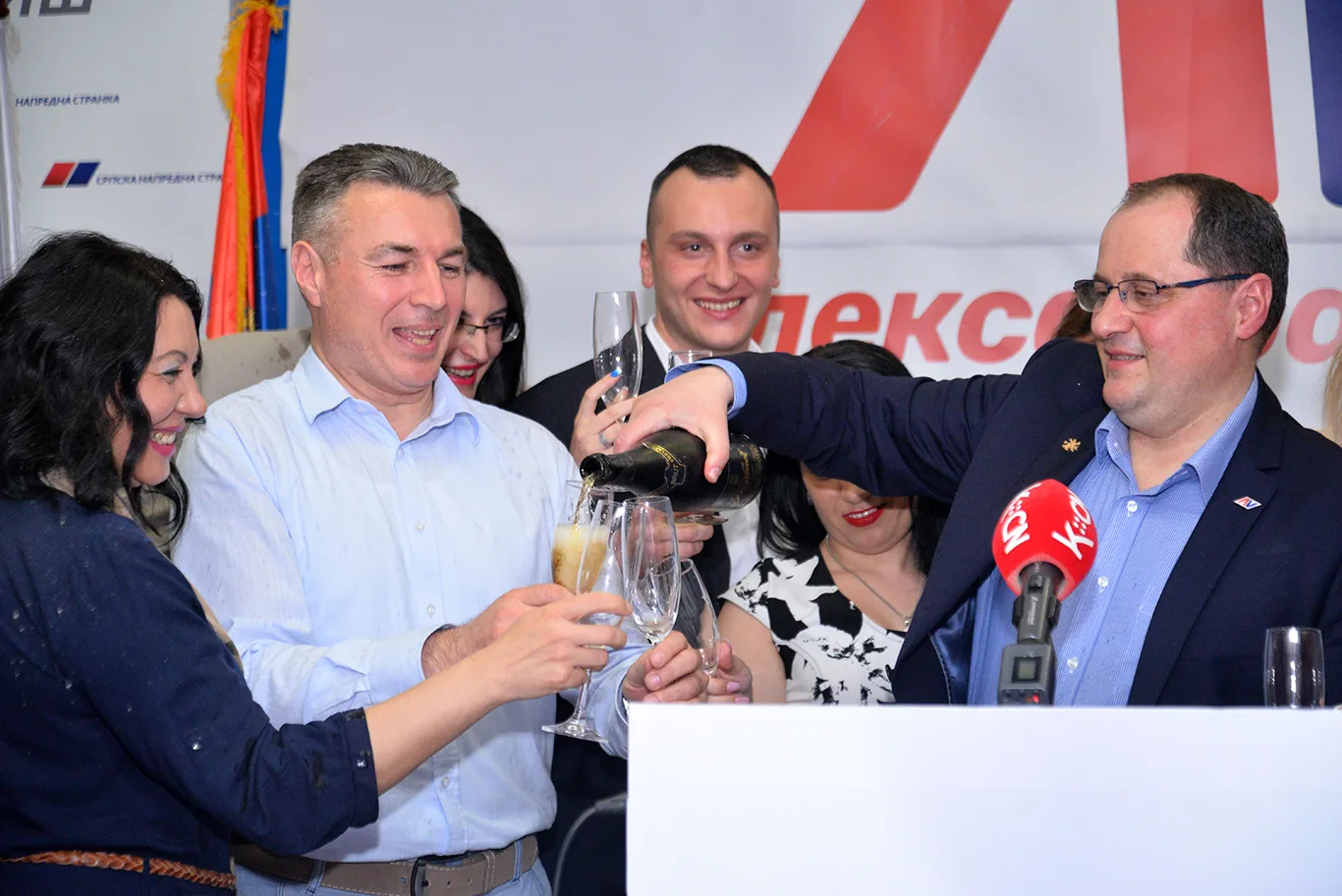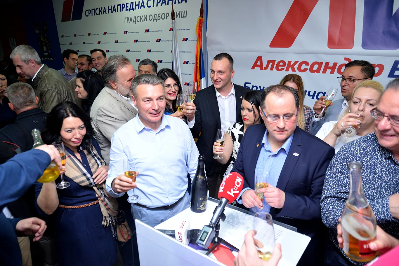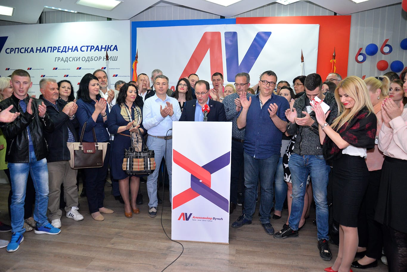 Uz roštilj i šampanjac, gradski odbor Srpske napredne stranke počeo je da slavi pobedu Aleksandra Vučića – prema njihovim podacima, na 146 biračkih mesta u Nišu kandidat vladajuće koalicije je osvojio oko 51,2 % glasova. U Doljevcu za naprednjake preko 80 % glasova.